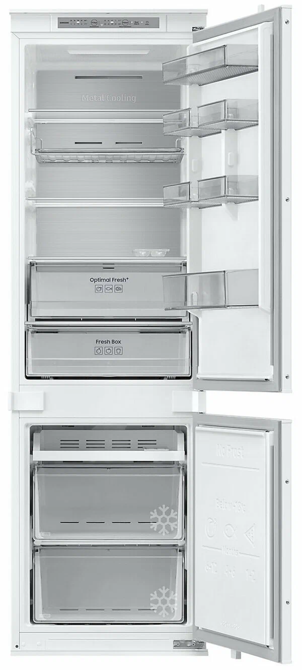Технология No Frost улучшает циркуляцию воздуха для поддержания постоянной температуры, что предотвращает образование льда. Он также намного быстрее достигает желаемой температуры. Система охлаждения используется меньше, поэтому служит дольше. Сократите потребление энергии до 10% с помощью режима Smart Things AI Energy. Если ваш предполагаемый счет за электроэнергию превышает запланированный показатель, у вас есть возможность установить параметры энергосбережения. Устройство оптимизирует скорость компрессора и цикл размораживания в зависимости от характера использования и окружающей среды. Функция SmartThings Home Care. Следить за состоянием холодильника теперь еще проще. SmartThings Home Care обеспечивает мониторинг и оповещения в режиме реального времени. Закупать и хранить продукты и готовить еду стало проще. Функция SmartThings Food позволяет составить список имеющихся продуктов и отслеживать сроки годности, чтобы вы всегда и отовсюду могли узнать, какие продукты хранятся у вас в холодильнике. Технология Metal Cooling — это отличная изоляция и исключительная эффективность охлаждения. Специальная металлическая панель задней стенки устройства аккумулирует низкую температуру, благодаря чему отлично удерживает холод внутри холодильника даже при его частом открывании. Это эстетичное и эффективное решение экономит энергию и сокращает время работы устройства.