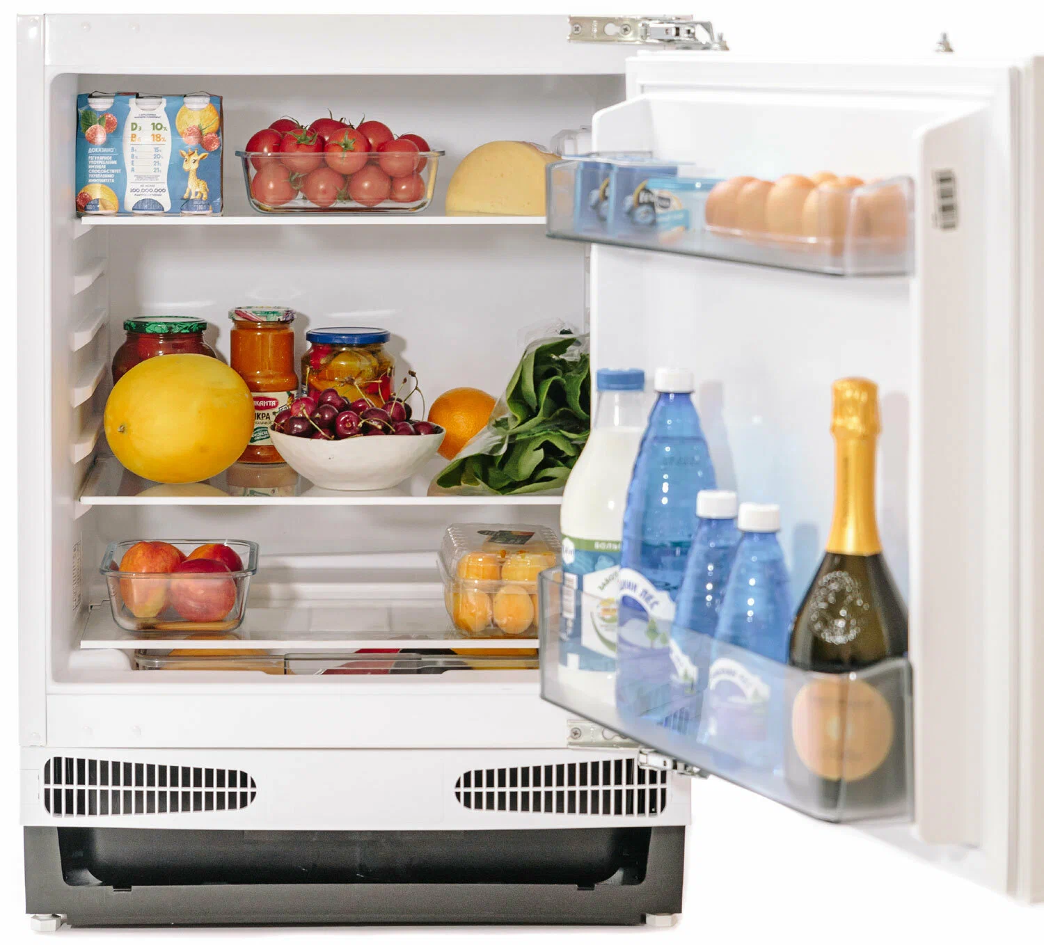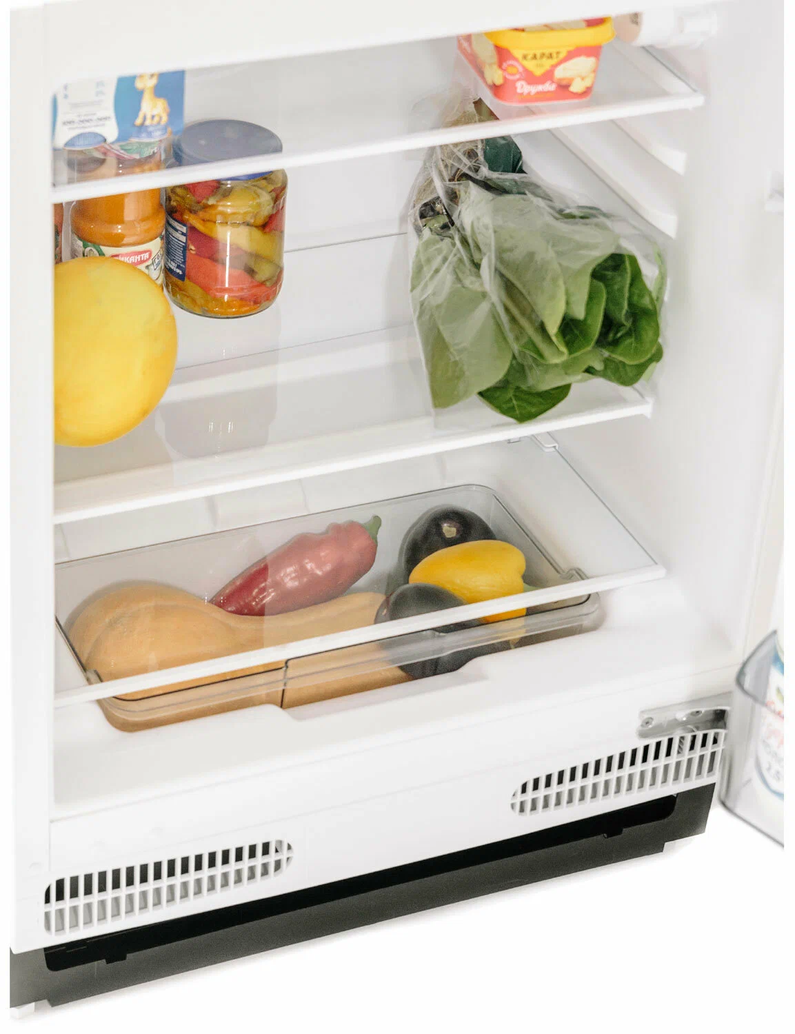 Имея небольшие габариты, холодильник при очень вместителен.