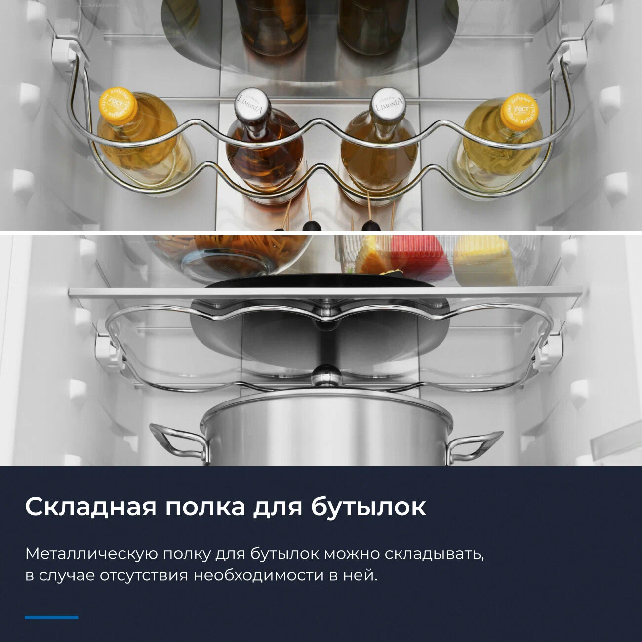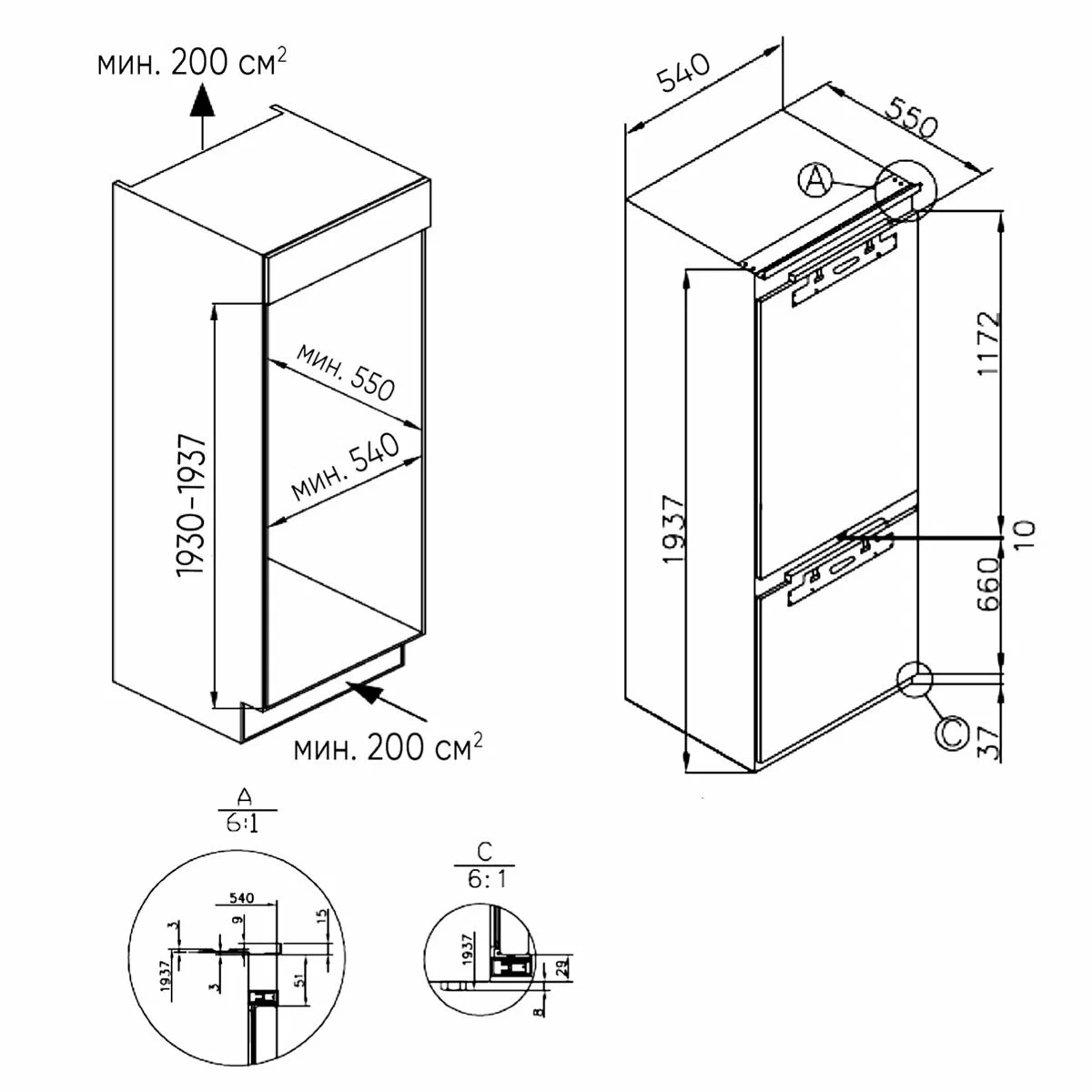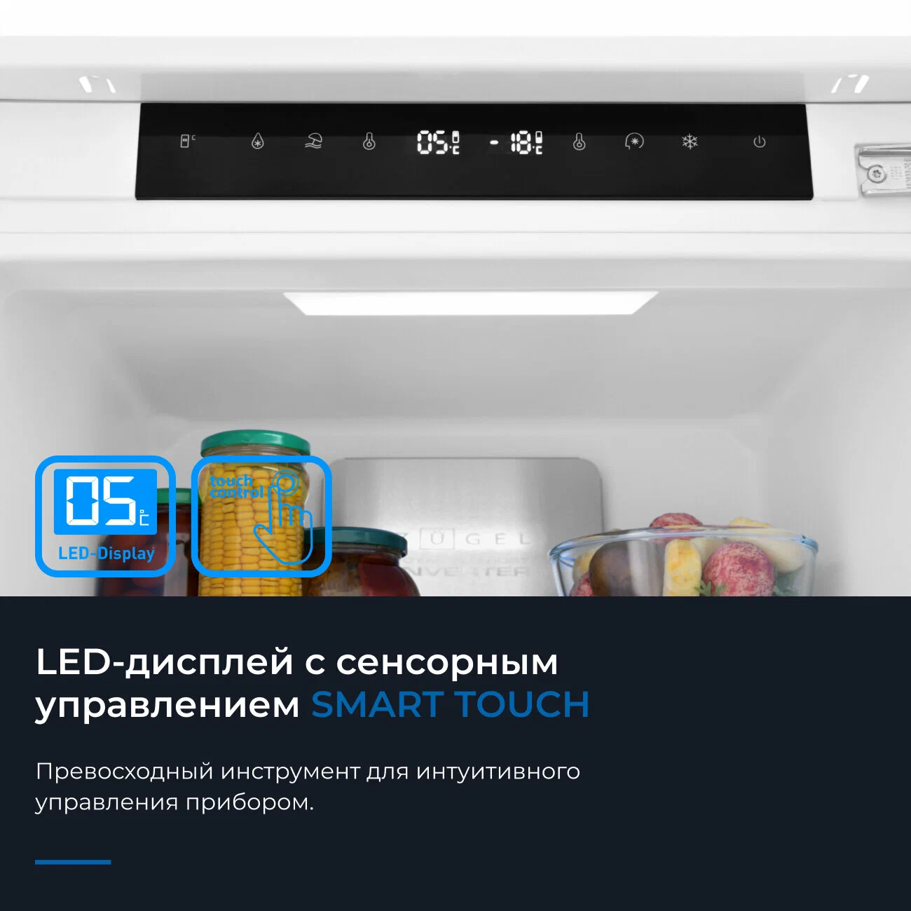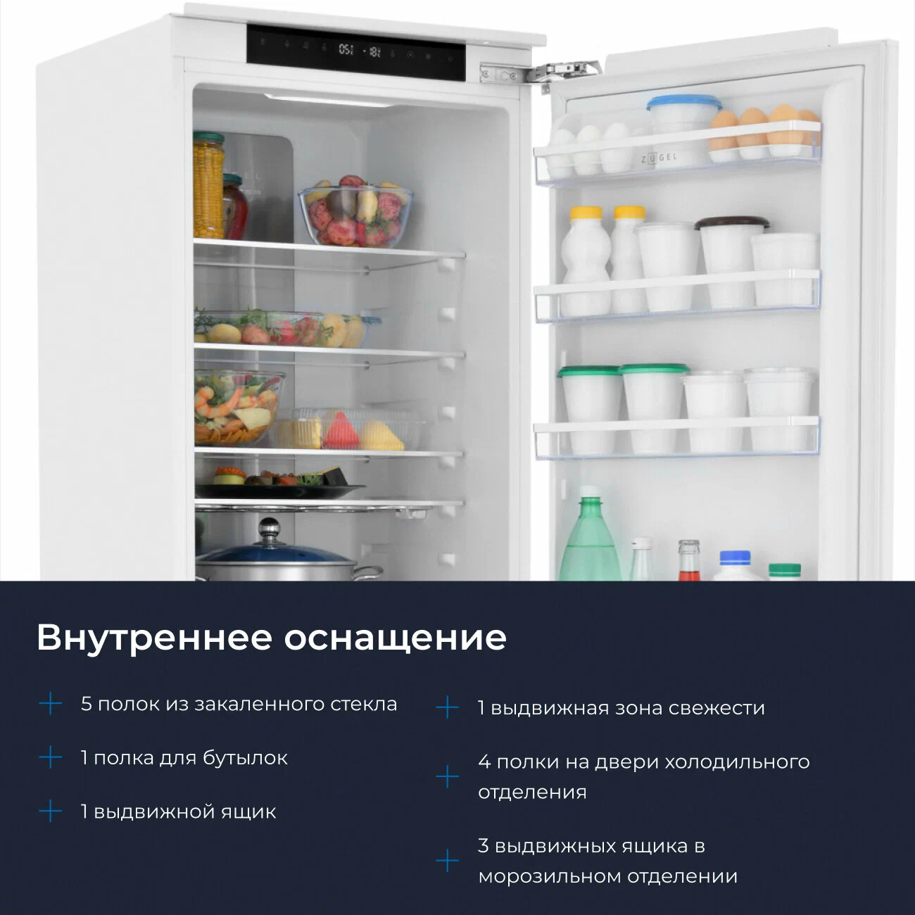 Тип: встраиваемый холодильник; Морозильная камера: снизу; Размораживание холодильной камеры: No Frost; Размораживание морозильной камеры: No Frost; Тип компрессора: инверторный; Тип управления: электронное; Мощность замораживания: 2.6 кг/сутки; Автономное сохранение холода: 11 ч;