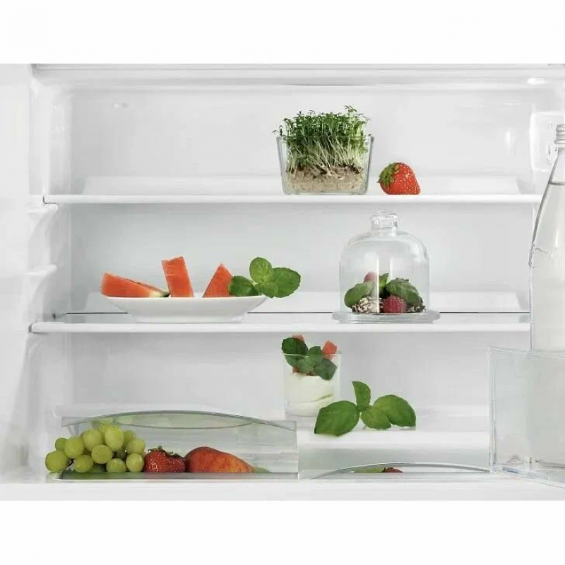 Серия SpaceSmart Combo предлагает оптимальное использование внутреннего пространства. Общий объем в 111 литров, из которых 94 литра приходятся на холодильное отделение, а 16 - на морозильное, позволяет хранить все необходимые продукты. Система OptiSpace гарантирует, что каждый сантиметр внутреннего пространства используется эффективно. Две полки из стекла в холодильной камере и один ящик обеспечивают удобное распределение продуктов. Подставка для яиц — приятное дополнение к функциональности.