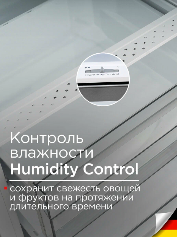 Благодаря контролю влажности «Humidity control» овощи и фрукты дольше остаются свежими
