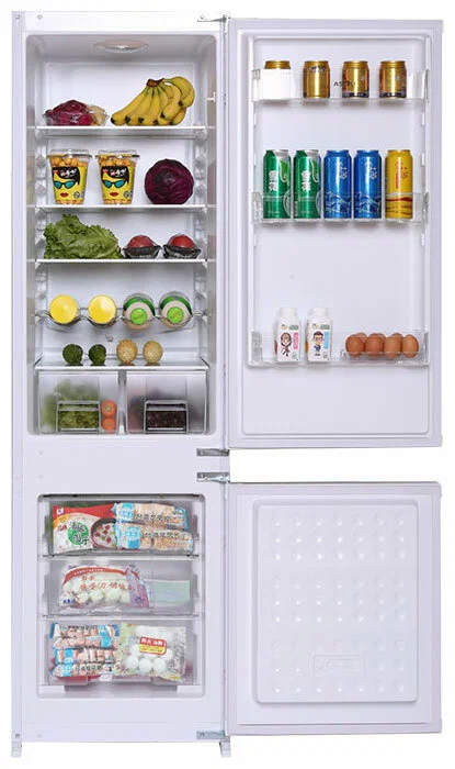 В этой модели установлены полки, регулируемые по высоте, и ящики из прозрачного пластика. Встроенное LED-освещение экономно расходует электроэнергию и помогает быстро отыскать то, что вы хотите найти именно сейчас.