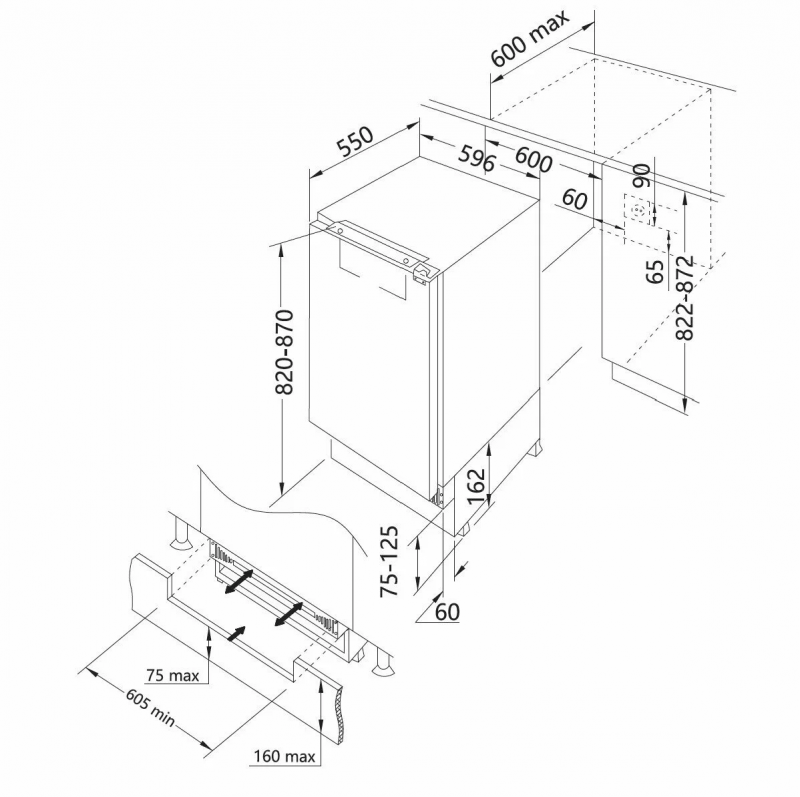 Компактный холодильник Korting KSI 8159Особенности:Категория: ХолодильникиУстановка: Встраиваемая техникаТип продукта: Холодильник с морозильником внутриКоличество дверей: 1Количество камер: 2Количество компрессоров: 1Тип компрессора: ИнверторныйУправление: ЭлектронноеТип охлаждения холодильной камеры: СтатическоеДинамическое охлаждение: КапельноеОсвещение: LEDЛамп освещения: 1Крепление фасада: ЖесткоеВозможность перевешивания двериДверной упор: СправаМонтаж двери: жесткое крепление (система door on door)Индикация открытой двери: ЗвуковаяРегулировка высотыХолодильная камера:Полезный объем: 95 лКапельная системаСистема размораживания холодильной камеры: АвтоматическаяСистема охлаждения холодильной камеры: СтатическаяКоличество полок: 2Материал полок: СтеклоКоличество дверных полок: 2Материал полок на дверце: ПластикМатериал полок и ящиков: ПластикЯщик зона свежести: ОтсутствуетМорозильная камера:Полезный объем: 16 лРасположение морозильной камеры: сверхуСистема размораживания морозильной камеры: РучнаяПроизводительность замораживания: 2 кг/суткиЛоток для приготовления кубиков льдаХарактеристики:Общий объем: 111 лКласс энергопотребления: А+Энергопотребление за год: 173 кВт/годНоминальная потребляемая мощность: 80 ВтХладагент: R600AНапряжение: 220-240 ВЧастота тока: 50 ГцУровень шума: 39 дБГабариты ниши для встраивания (ВхШхГ): 822-872x600x550 ммРазмер прибора (ВхШхГ): 818х596х550 ммВес нетто: 27.0 кгЦвет: Белый