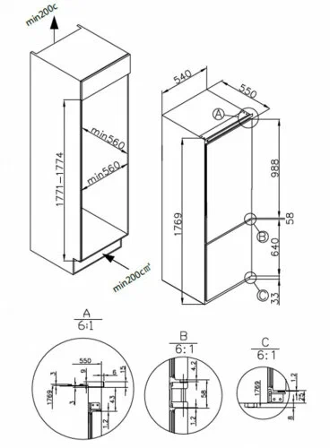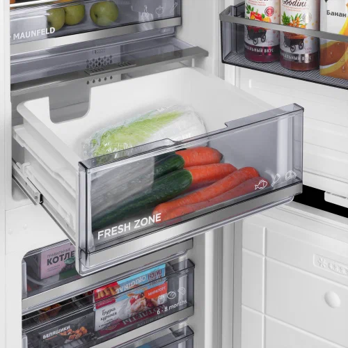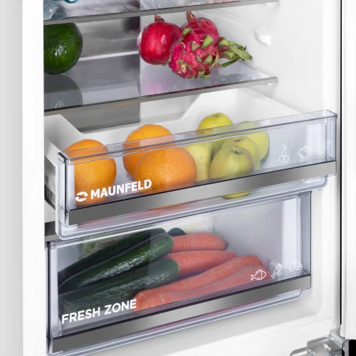 Встраиваемый холодильник Maunfeld MBF17754NFWHGR LUX - это сочетание функциональности, эффективности и стильного дизайна. Общий объем в 245 литров и полезный объем в 241 литр обеспечивают достаточно места для хранения продуктов. Внутреннее пространство разделено на холодильное отделение объемом 179 литров и морозильное отделение объемом 66 литров.