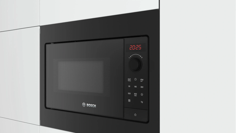 Микроволновая печь Bosch BFL523МВ3 в корпусе черного цвета оборудована рабочей камерой объемом 20 л, сенсорным блоком управления и цифровым экраном. Внутри есть LED-подсветка. Передняя панель сделана из стекла и металла, внутренние стенки — из нержавеющей стали. Диаметр поворотного стола — 27 см.