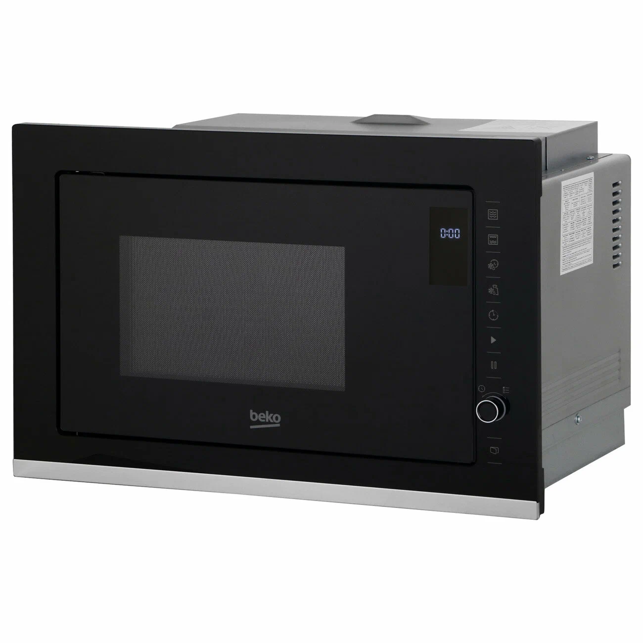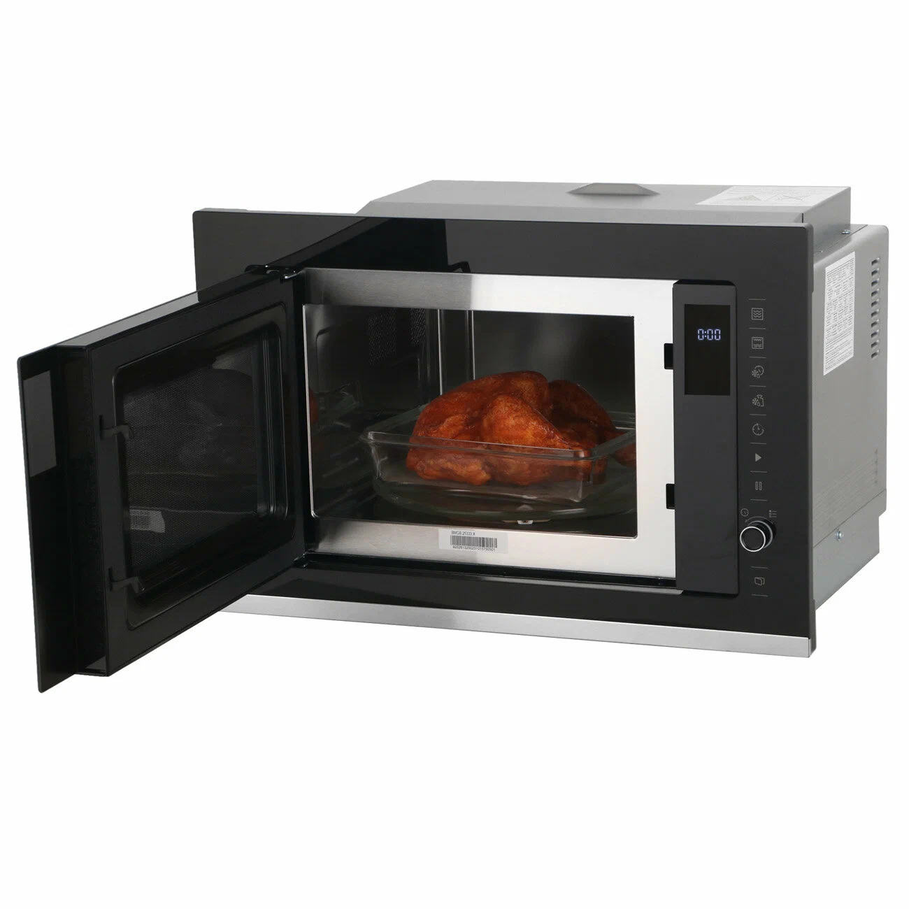 Микроволновая печь Beko BMGB 25333 X черного цвета монтируется в нишу размером 38х56х50 см. Фронтальная панель сделана из стекла и металла, дверь открывается налево с помощью клавиши. Устройство оборудовано поворотным блюдом диаметром 31,5 см.Мощность микроволн регулируется на пяти уровнях (максимальная - 900 Вт). В прибор заложены восемь автоматических программ, включая гриль, размораживание по весу. Настройки устанавливаются с помощью сенсорной панели и поворотного переключателя. Информация о выбранном режиме и времени до окончания приготовления отображается на дисплее.С помощью таймера можно запланировать запуск процесса на удобное время - отложить старт печи на срок до 95 минут. Камера обладает объемом 25 л. Встроенное освещение позволяет контролировать процесс, не открывая дверь. В комплект входит высокая решетка. Габариты печи - 38,8х59,5х39,2 см, вес - 18,5 кг.