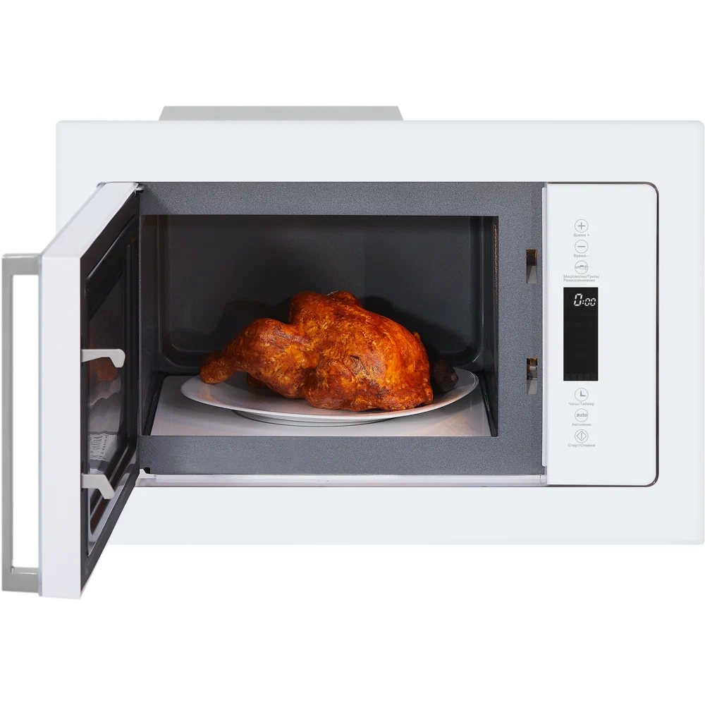 Встраиваемая микроволновая печь HIBERG i-VM 8505 W с инверторной технологией работы и стеклокерамическим дном без поворотного стола — это многофункциональное устройство для разогрева и приготовления любимых блюд.