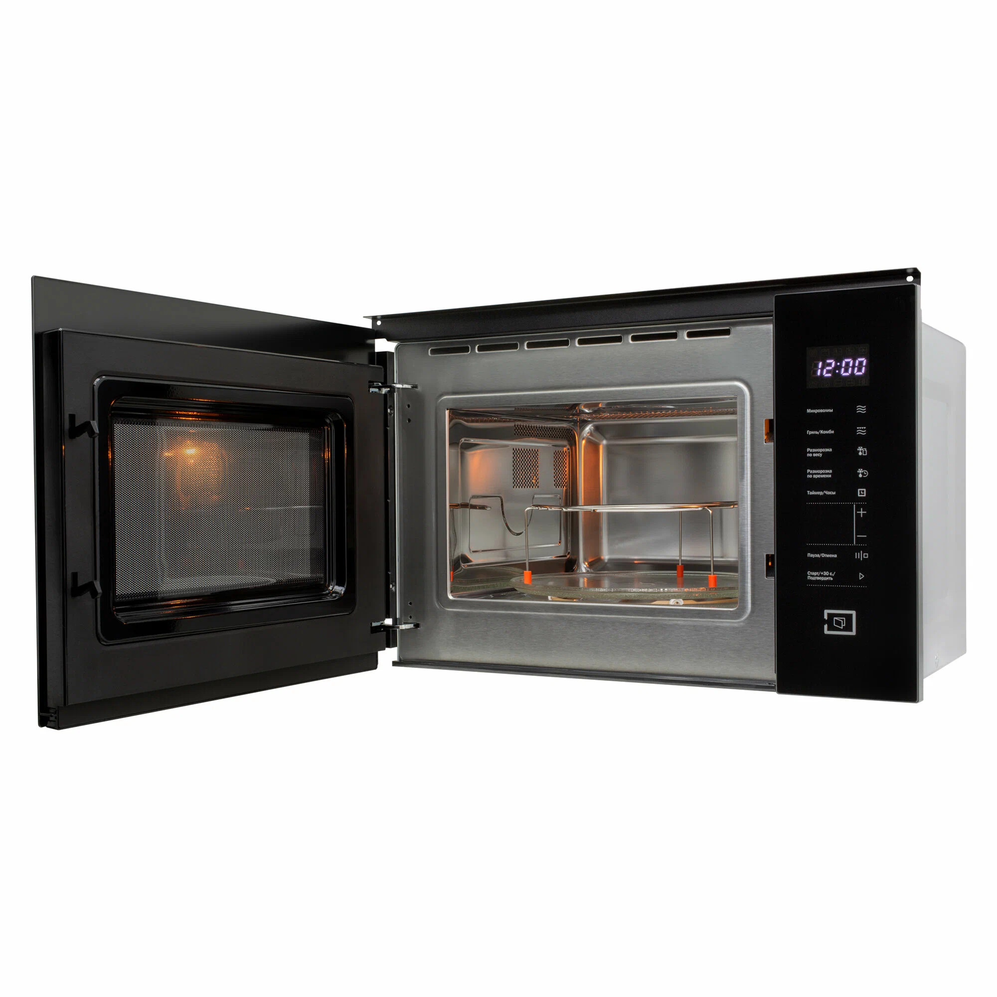 Встраиваемая микроволновая печь объемом 25 л – незаменимая вещь не только для повседневных дел, но и лаконичного оформления кухни. Ее стильный дизайн впишется в любой интерьер. К особенностям микроволновой печи также относятся:Цифровой дисплей с крупной и понятной индикацией.Разморозка по весу и по времени – удобная функция на каждый день.Встроенный гриль – запекайте блюда до хрустящей корочки: мясо, рыба или овощи – все получится аппетитно и очень вкусно!Комбинированный режим сочетает гриль и микроволны с настраиваемыми продолжительностью и мощностью, открывая новые варианты приготовления любимых блюд.Внутреннее освещение5 уровней мощности с максимальной мощностью 900 ВтИнтерфейс полностью на русском языкеБлокировка панели управления от случайных касаний во время готовки или уборки.Камера из нержавеющей стали – прочная и устойчивая к перепаду температур и механическому воздействию.В комплекте: поворотный стол диаметром 31,5 см и решетка для гриля.