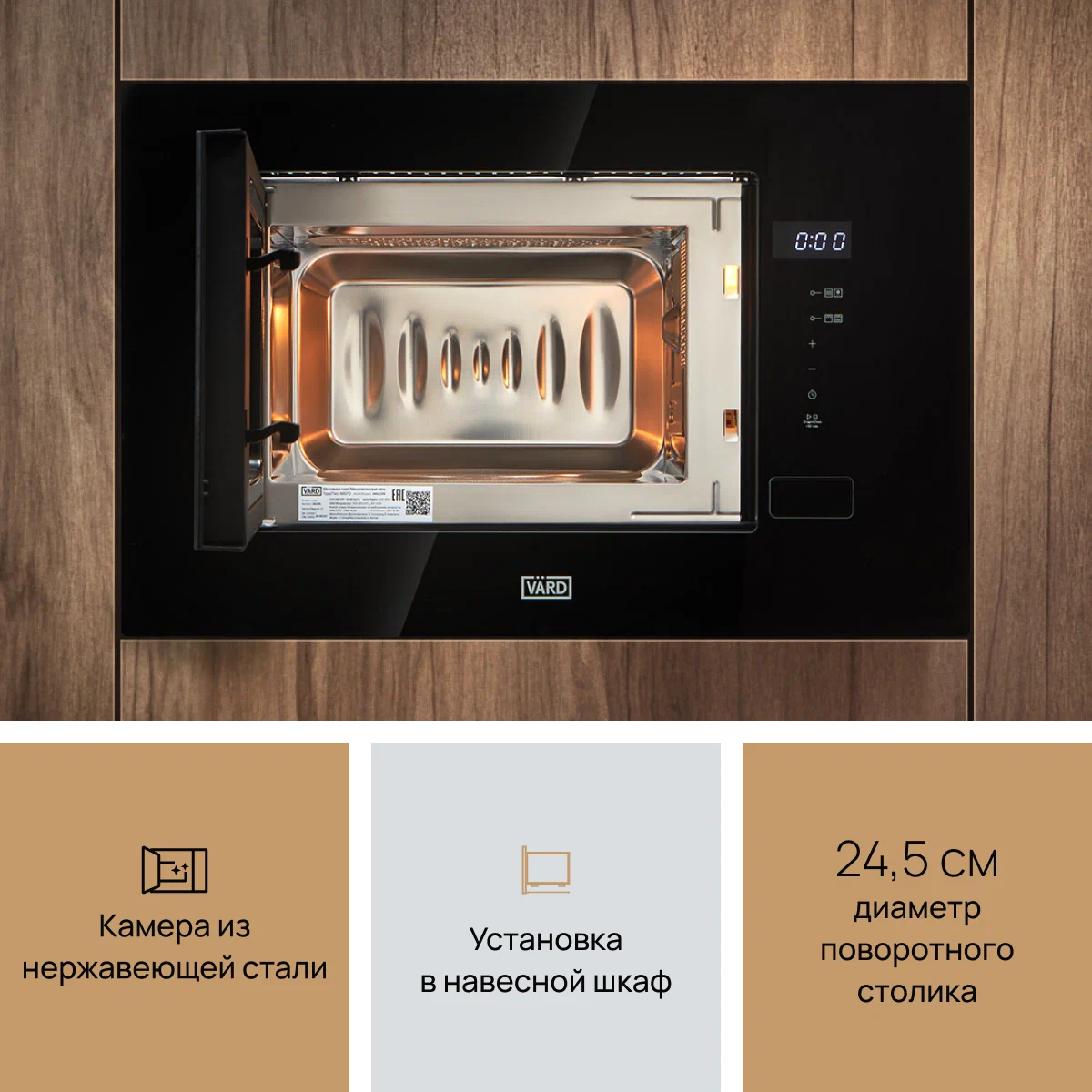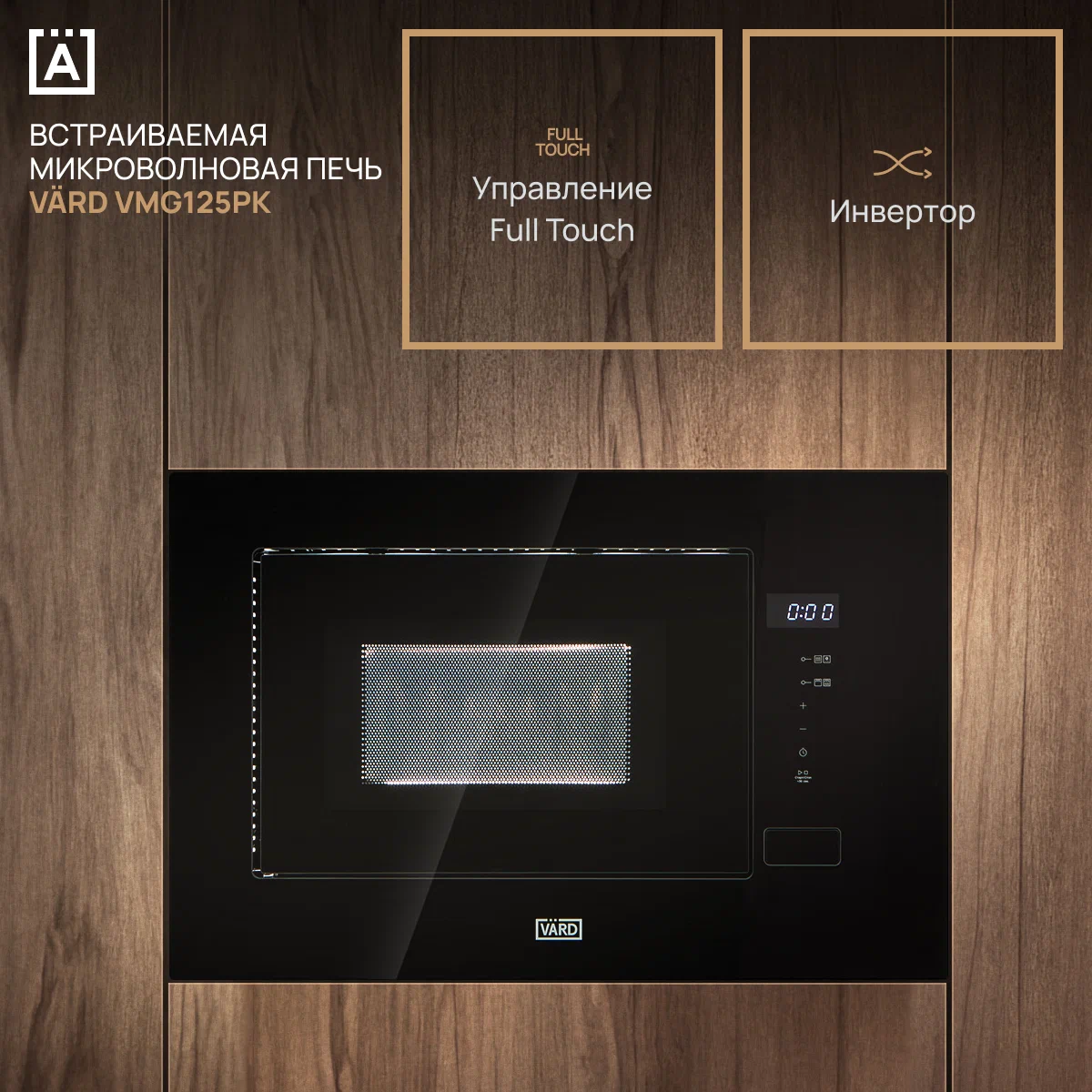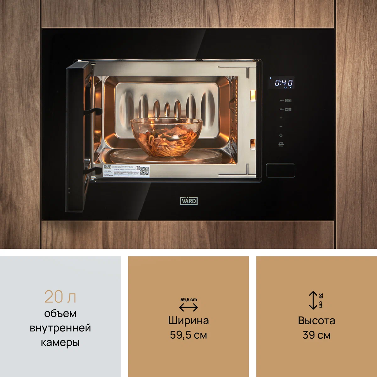Встраиваемая микроволновая печь Vard VMG125PK - это современное и функциональное решение для вашей кухни.Объем камеры составляет 20 литров, что позволяет готовить блюда для большой семьи или компании друзей. Внутреннее покрытие камеры выполнено из нержавеющей стали, что обеспечивает долговечность и простоту ухода за печью.Мощность микроволн составляет 800 Вт, а мощность гриля - 800 Вт. Это позволяет быстро и равномерно готовить различные блюда, включая мясо, рыбу, овощи и выпечку.Печь оснащена сенсорными переключателями и дисплеем, что делает управление процессом приготовления быстрым и удобным.Особенностью данной модели является наличие блокировки от детей, что обеспечивает безопасность использования печи для всей семьи.Потребляемая мощность составляет всего 1280 Вт, что делает данную модель экономичной в использовании.Встраиваемая микроволновая печь Vard VMG125PK - это сочетание функциональности, удобства и стиля, которое станет незаменимым помощником на вашей кухне.