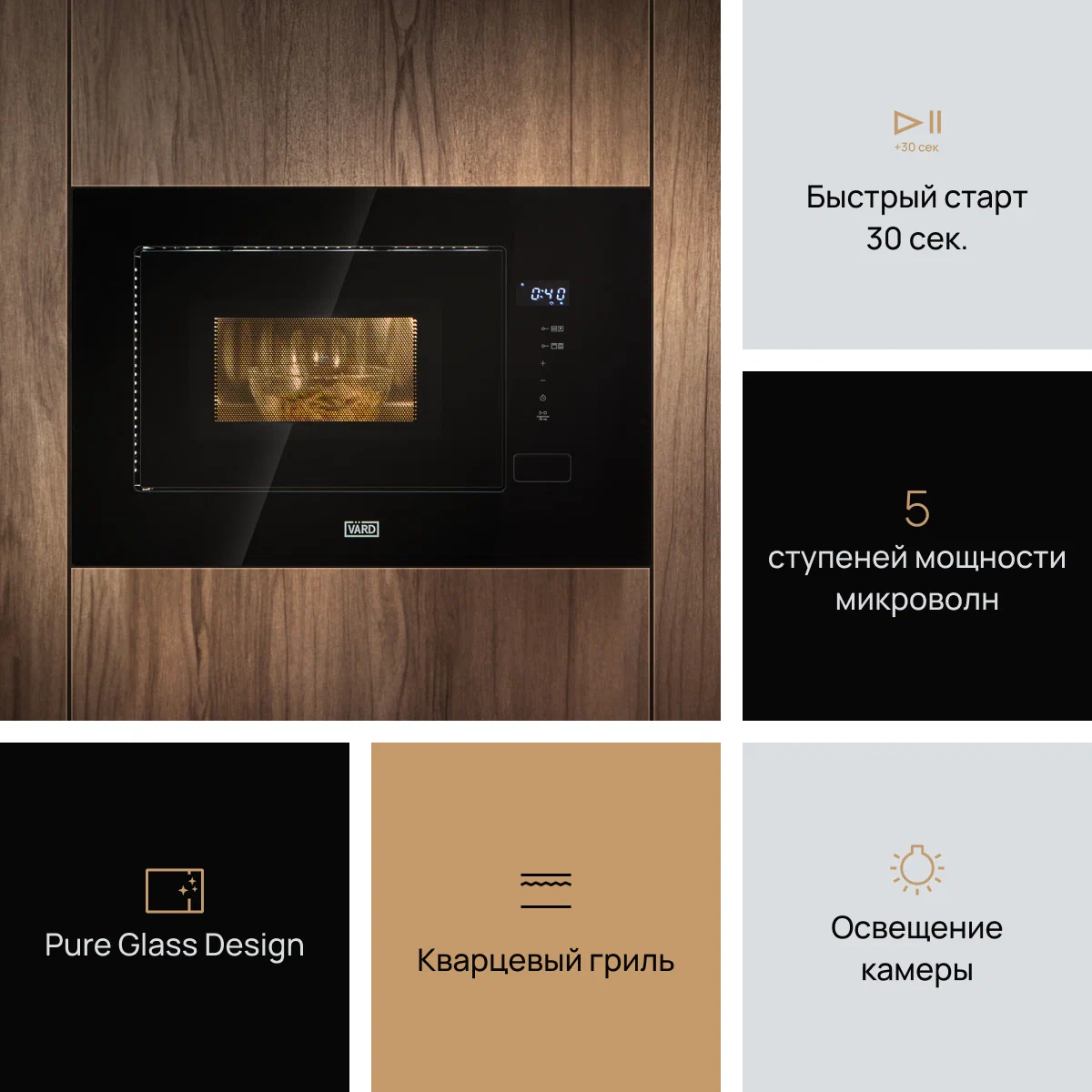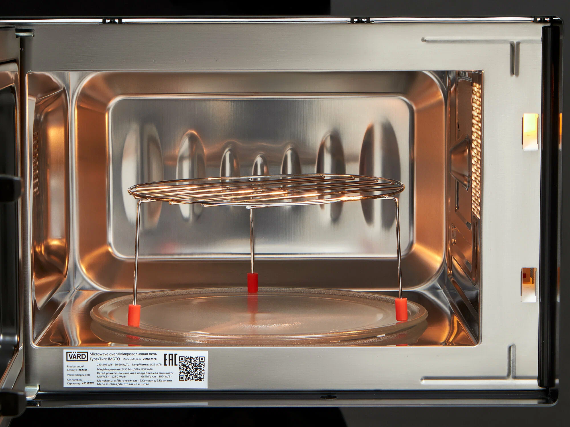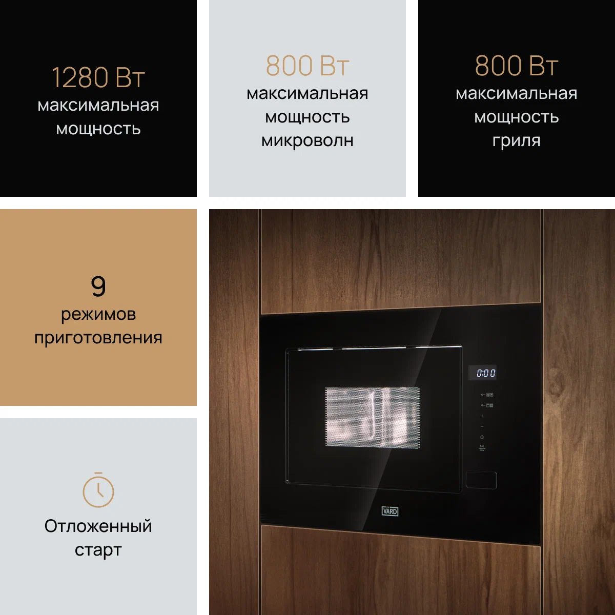Встраиваемая микроволновая печь Vard VMG125PK - это современное и функциональное решение для вашей кухни.Объем камеры составляет 20 литров, что позволяет готовить блюда для большой семьи или компании друзей. Внутреннее покрытие камеры выполнено из нержавеющей стали, что обеспечивает долговечность и простоту ухода за печью.Мощность микроволн составляет 800 Вт, а мощность гриля - 800 Вт. Это позволяет быстро и равномерно готовить различные блюда, включая мясо, рыбу, овощи и выпечку.Печь оснащена сенсорными переключателями и дисплеем, что делает управление процессом приготовления быстрым и удобным.Особенностью данной модели является наличие блокировки от детей, что обеспечивает безопасность использования печи для всей семьи.Потребляемая мощность составляет всего 1280 Вт, что делает данную модель экономичной в использовании.Встраиваемая микроволновая печь Vard VMG125PK - это сочетание функциональности, удобства и стиля, которое станет незаменимым помощником на вашей кухне.