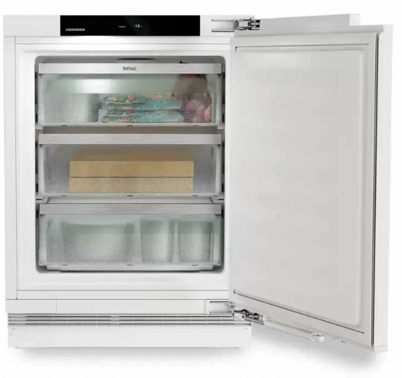 Встраиваемый морозильник Liebherr SUFNd 365i - это современное и функциональное решение для хранения продуктов.Liebherr - это известный бренд, который зарекомендовал себя на рынке бытовой техники благодаря высокому качеству и надежности своей продукции.Морозильник имеет общий объем 88 литров, полезный объем составляет 72 литра. Это позволяет хранить достаточное количество продуктов для всей семьи.Система размораживания No Frost обеспечивает автоматическое размораживание морозильника, что значительно упрощает процесс ухода за ним.Высота морозильника составляет 81,8 см, ширина - 59,7 см, глубина - 55 см. Благодаря компактным размерам, он легко впишется в любой интерьер.Управление осуществляется с помощью электронного дисплея, что делает использование морозильника удобным и интуитивно понятным.Класс энергопотребления A+ говорит о высокой энергоэффективности морозильника. Это означает, что он потребляет меньше энергии, чем другие модели, что позволяет экономить на счетах за электричество.Морозильник оснащен одним компрессором и хладагентом R600a (изобутан), что обеспечивает стабильную работу и надежность устройства.Цвет морозильника - белый, что позволяет ему гармонично вписаться в любой интерьер кухни.В целом, встраиваемый морозильник Liebherr SUFNd 365i - это надежный, функциональный и энергоэффективный выбор для хранения продуктов на вашей кухне.