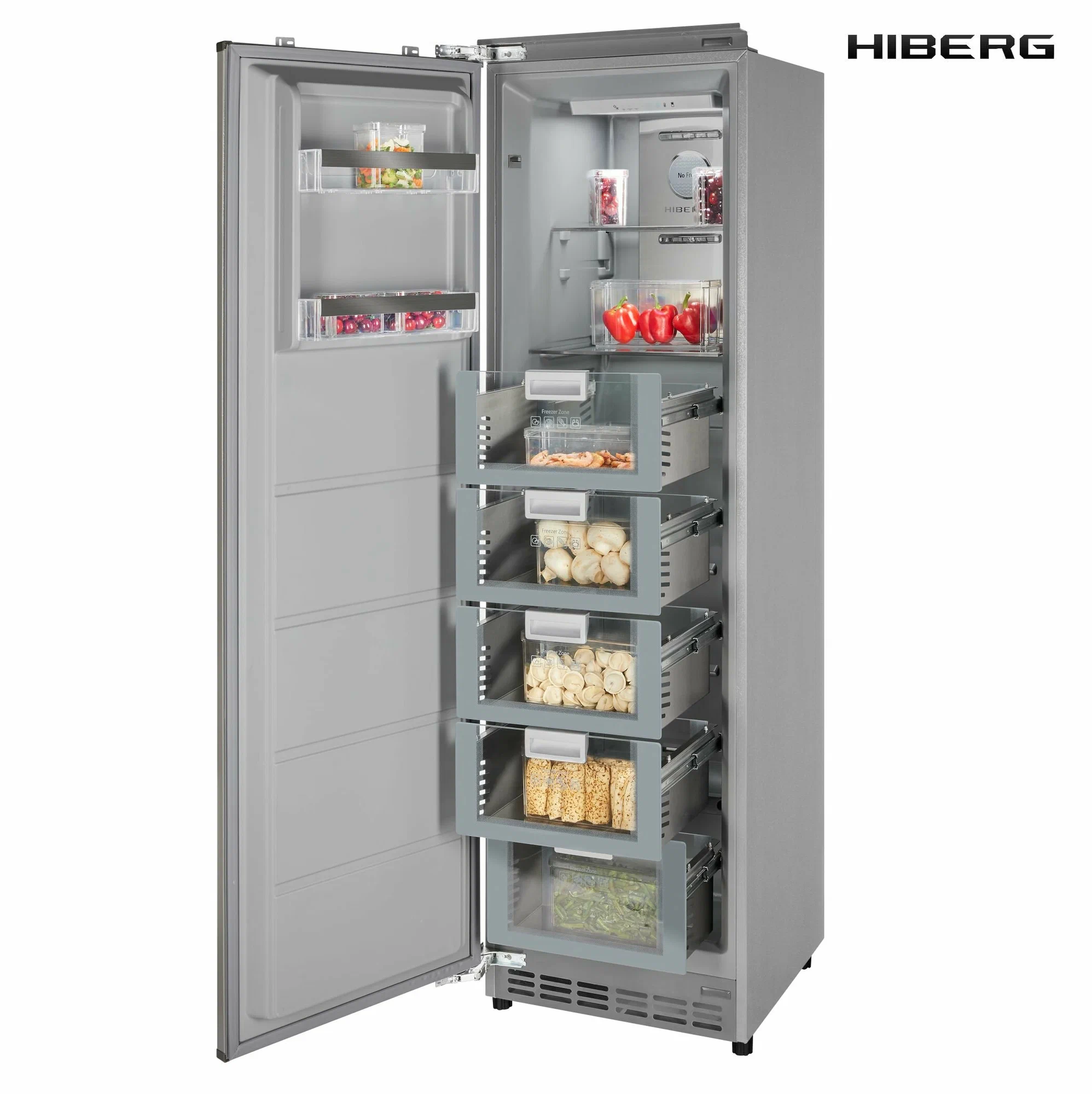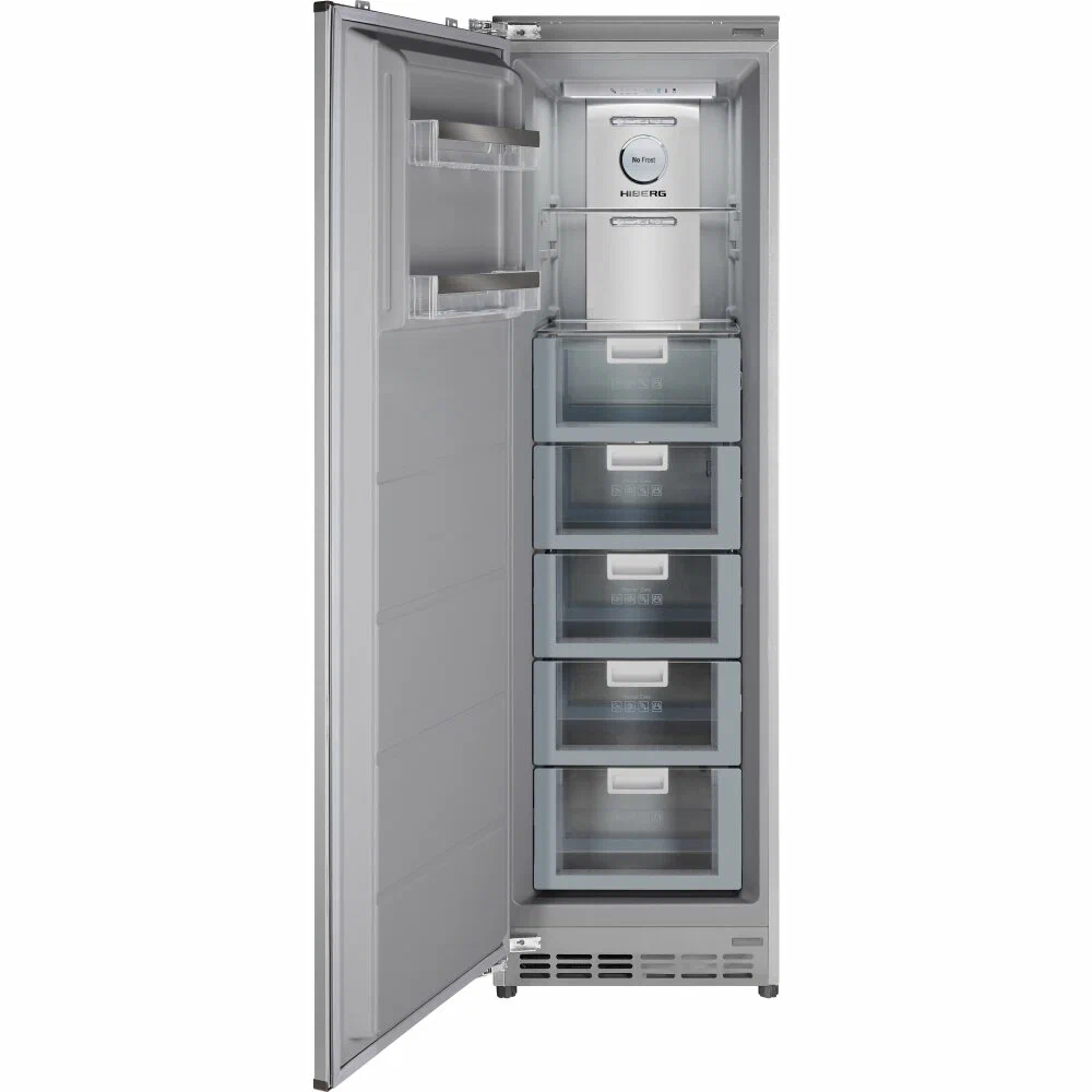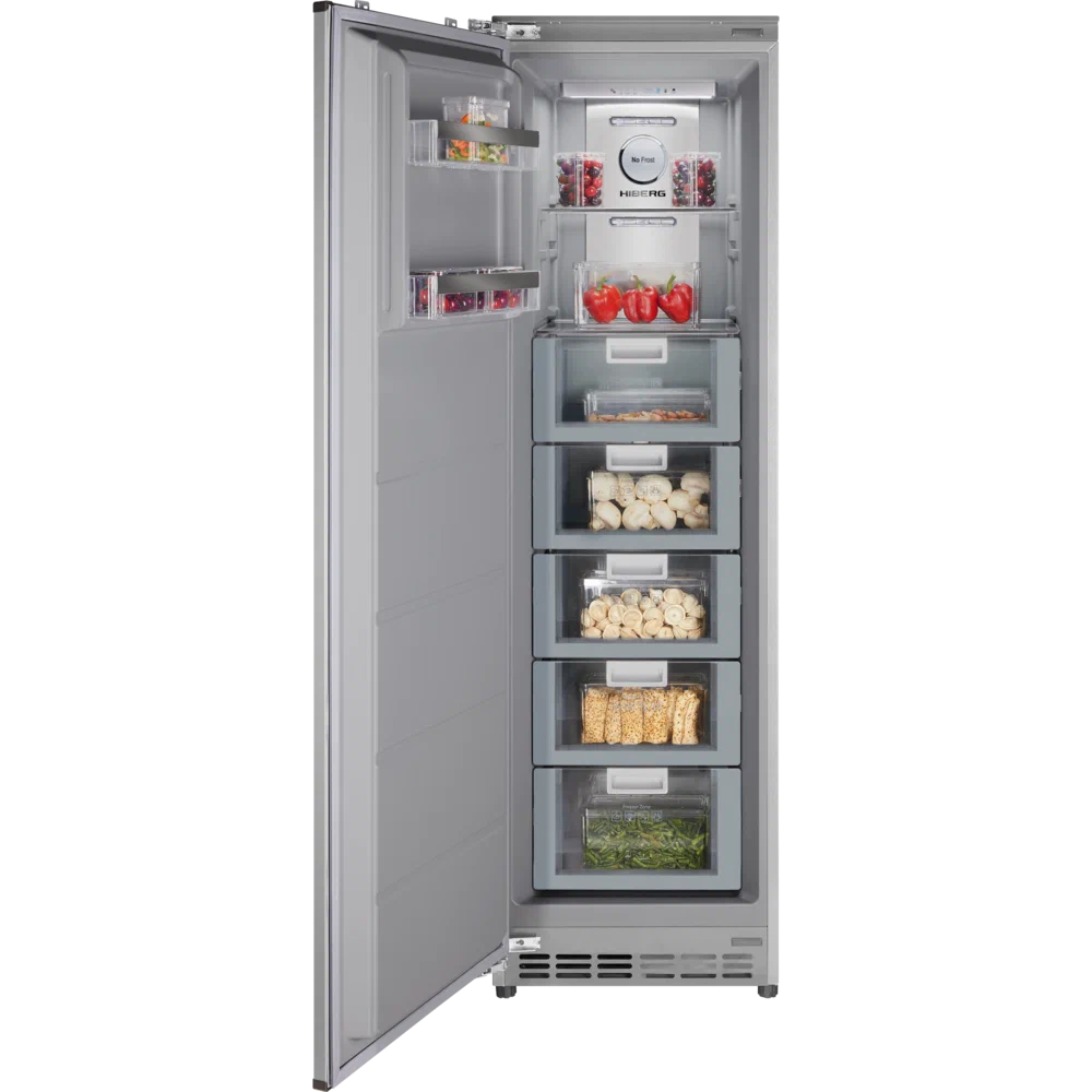 Встраиваемый морозильник HIBERG i-FRB 35 NF с инверторным компрессором, автоматической системой охлаждения No Frost и электронным управлением подходит для хранения всех необходимых для большой семьи продуктов. А в сочетании с встраиваемым холодильником HIBERG i-RFB 35 NF морозильник создаст единую линию кухонного гарнитура.