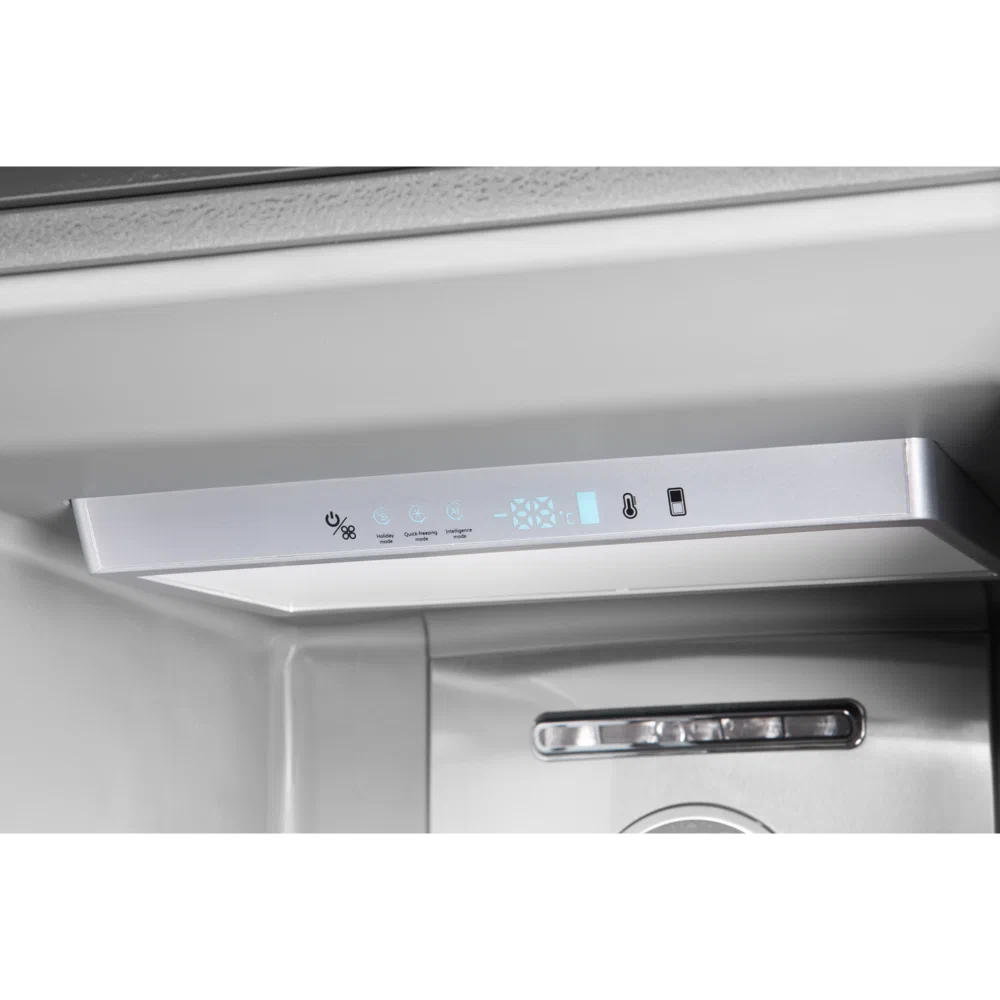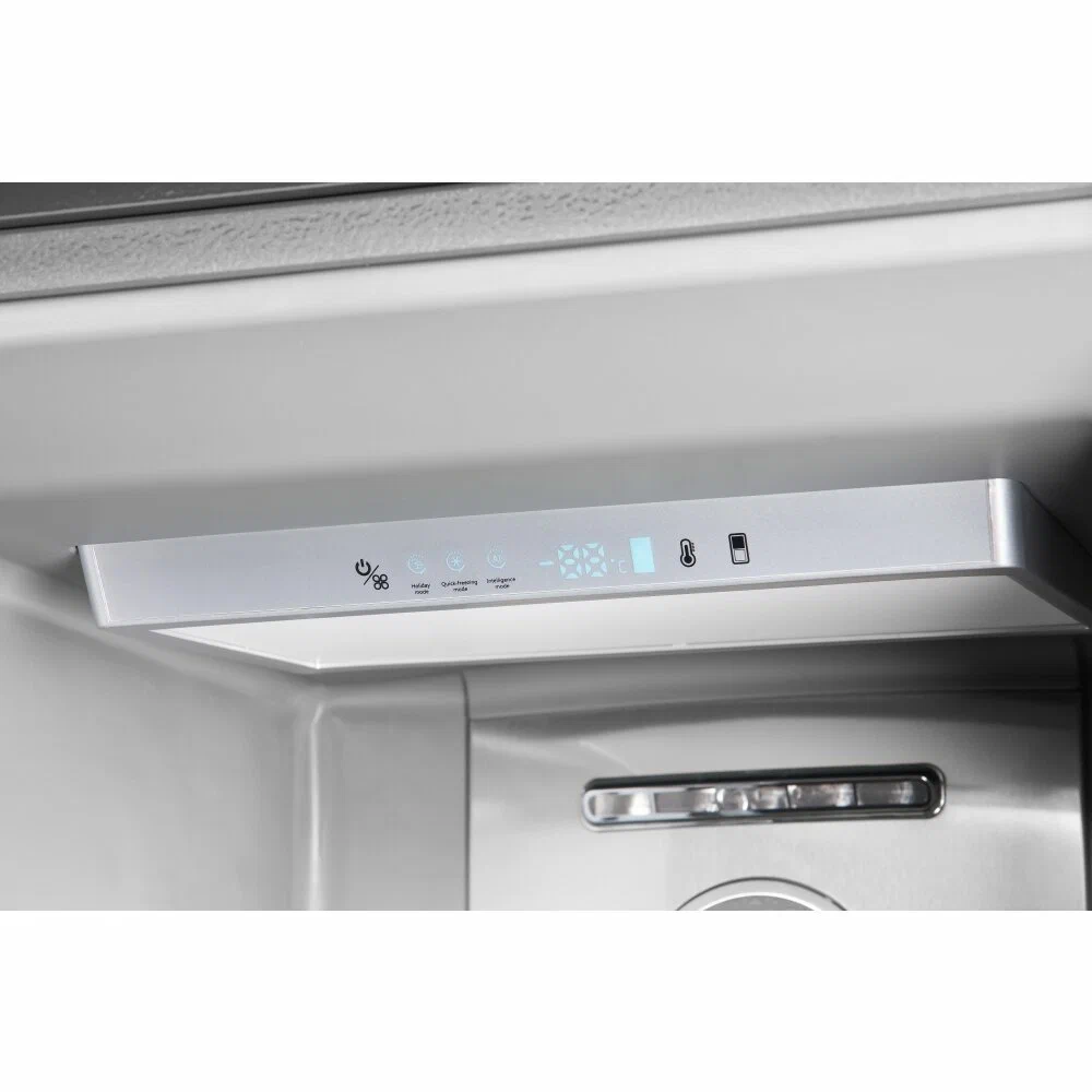 Электронная панель управления расположена внутри морозильника. Нажатием на кнопки можно легко выбрать необходимый режим и функцию, а также отрегулировать температуру заморозки.