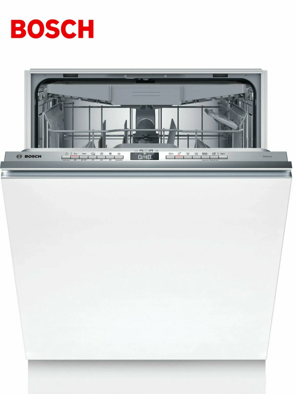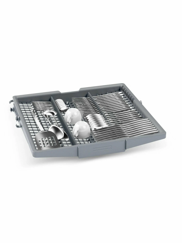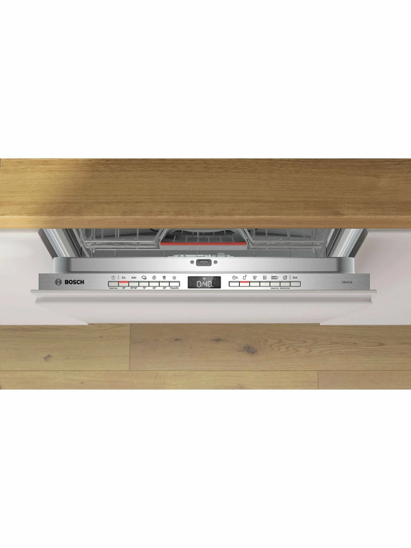 Встраиваемая посудомоечная машина Bosch SBH4HVX00E сочетает аккуратный внешний вид и продуманные инженерные решения, позволяющие превращать ежедневный ритуал в тихую и экономичную процедуру. Стальная панель управления из нержавеющей стали визуально подчёркивает статусность техники и обеспечивает устойчивость к износу, а закрытая панель сохраняет цельность кухонного фасада, делая прибор гармоничным элементом интерьера без лишних деталей на виду. Компактные пропорции при полноразмерном объёме загрузки позволяют разместить до 14 комплектов одновременно, что особенно удобно для больших семей или тех, кто предпочитает реже запускать цикл. Внутренняя компоновка выполнена с акцентом на гибкость: три корзины с регулируемой по высоте верхней секцией Rackmatic-3 и двумя полочками для чашек дают возможность быстро адаптировать пространство под посуду разного формата, а складные направляющие для тарелок в верхнем и нижнем отделениях упрощают укладку кастрюль или высоких бокалов.