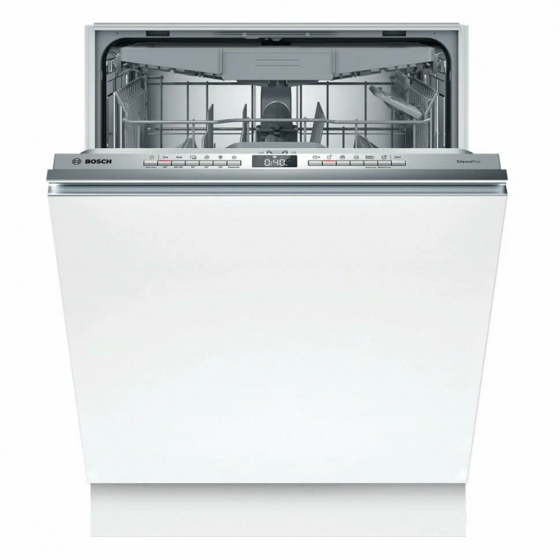 Встраиваемая посудомоечная машина Bosch SMV4EVX11E серии Serie 4 объединяет строгие линии и продуманную функциональность: фронтальная панель управления выполнена из нержавеющей стали, а закрытая панель скрывает органичную компоновку кнопок и информативный дисплей. Внутреннее пространство из нержавеющей стали обеспечивает гигиеничность и долговечность, при этом наличие трёх корзин и продуманная конфигурация полочек позволяют разместить до 14 комплектов посуды в одном цикле. Верхний короб регулируется по высоте с помощью системы Rackmatic-3, а две складные направляющие и дополнительные полочки для чашек дают гибкость при загрузке нестандартных предметов. Материал бака и эргономика внутренней компоновки рассчитаны на интенсивную эксплуатацию, при этом изделие весит всего 34.4 кг и вписывается в типовую нишу 81.5–87.5 х 60 х 55 см.