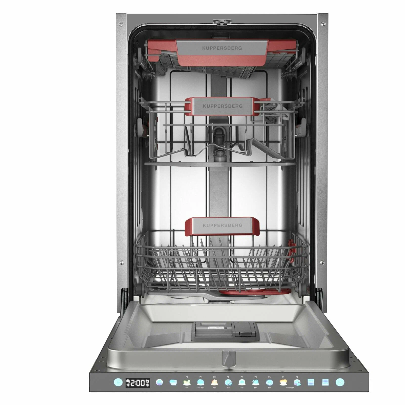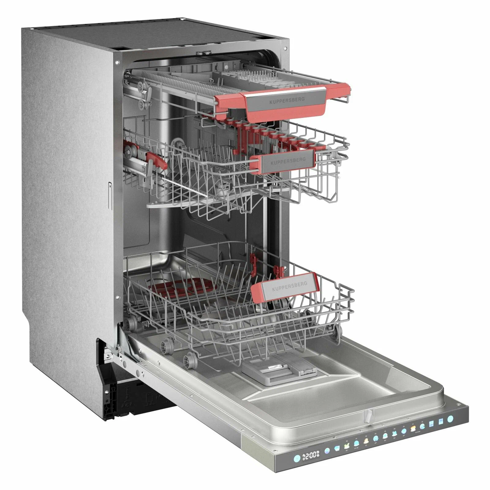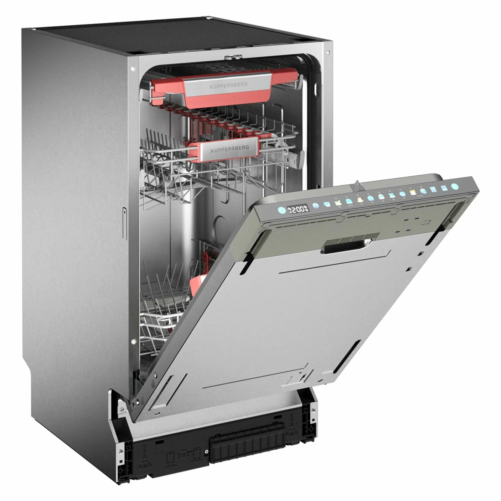 Посудомоечная машина Kuppersberg GIM 4595 — это узкая (45 см) встраиваемая модель, которая подходит для мойки до 10 комплектов посуды одновременно. Она оснащена инверторным мотором, сенсорным управлением и имеет класс энергопотребления A+++ . Машина обеспечивает высокое качество мойки и сушки посуды, благодаря чему получила классы A в обоих этих параметрах.Среди особенностей модели — наличие трёх корзин, регулируемой средней корзины с лифт-механизмом, корзины для столовых приборов с изменяемой формой, полки для чашек и складных держателей тарелок. Также предусмотрены функции отложенного старта на 24 часа, сокращения времени мытья и настройки дозировки ополаскивателя и расхода соли.Посудомоечная машина Kuppersberg GIM 4595 имеет конденсационную сушку и семь автоматических программ для различных режимов мойки. Уровень шума при работе не превышает 42 дБ.