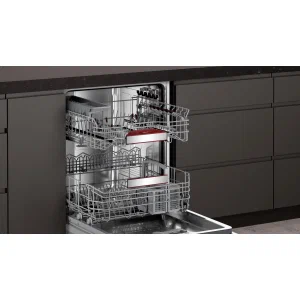 Встраиваемая посудомоечная машина NEFF S197EB802E — это воплощение немецкого качества и современного подхода к организации кухонного пространства. Модель отличается строгим лаконичным дизайном с черной сенсорной панелью управления, которая скрыта за фасадом мебели, что делает устройство практически незаметным в интерьере. Внутреннее пространство выполнено из прочной нержавеющей стали, что гарантирует долговечность и простоту ухода. Элегантное внутреннее освещение EmotionLight обеспечивает отличную видимость содержимого даже при слабом внешнем освещении, а система DoorOpenAssist позволяет открывать дверцу легким нажатием, что особенно удобно при занятой или мокрой руке.