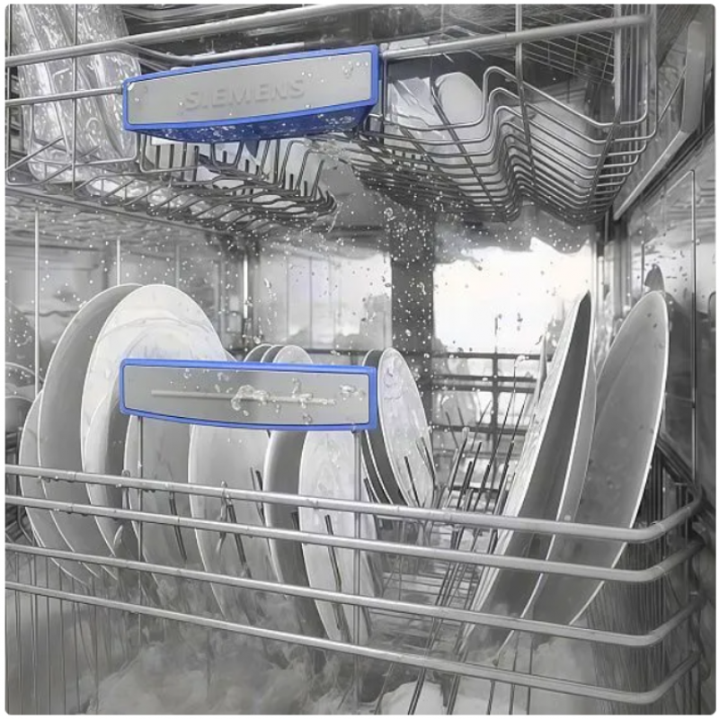 Посудомоечная машина Siemens SN63HX16VE - это отдельно стоящая полноразмерная модель, которая станет незаменимым помощником на вашей кухне.Инверторный двигатель обеспечивает более тихую и эффективную работу, а также экономит электроэнергию.Вместимость машины составляет 14 комплектов посуды, что позволяет одновременно мыть большое количество посуды. Третий уровень загрузки позволяет размещать посуду в наиболее удобном положении для мойки.Электронное управление с индикаторами наличия ополаскивателя и соли обеспечивает простоту использования и контроль за процессом мойки.Регулируемая по высоте корзина для посуды позволяет разместить посуду любого размера и формы.Безопасность обеспечивается защитой от протечек, что гарантирует сухость и чистоту вашей кухни.Машина имеет 6 программ мойки, включая интенсивную, экономичную и быструю программы.Класс мойки и сушки A гарантирует высокое качество мойки и сушки посуды.Расход воды составляет всего 9 литров за цикл, а энергопотребление - 0.849 кВтч.Уровень шума при работе составляет всего 46 дБ, что делает эту модель тихой и комфортной для использования.Черный цвет корпуса придает машине стильный и современный вид, который будет гармонично смотреться на любой кухне.Максимальная температура воды на входе составляет 65 градусов, что позволяет эффективно удалять даже самые стойкие загрязнения.Выбирая посудомоечную машину Siemens SN63HX16VE, вы получаете надежного помощника, который облегчит вашу жизнь и сделает процесс мытья посуды более комфортным и приятным.