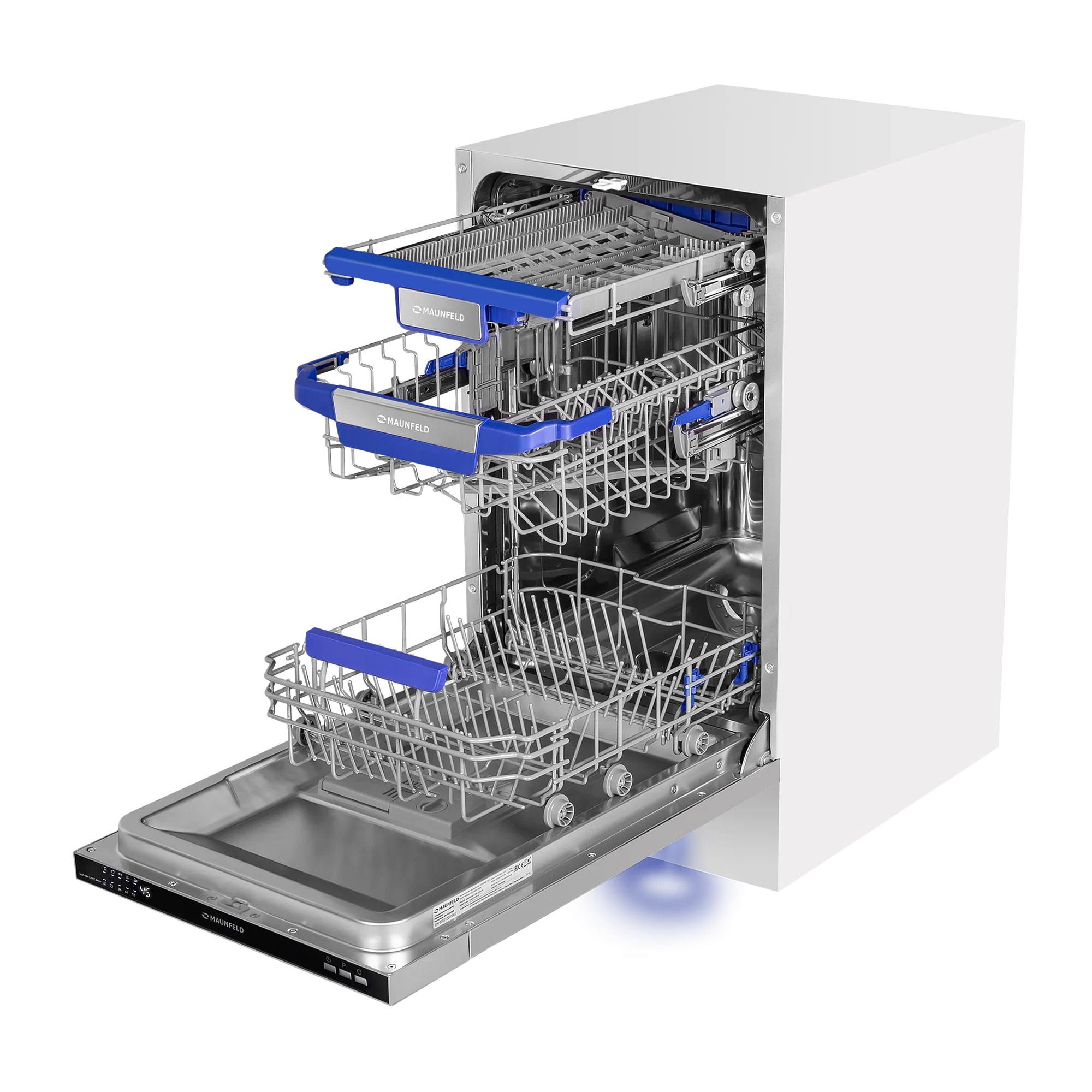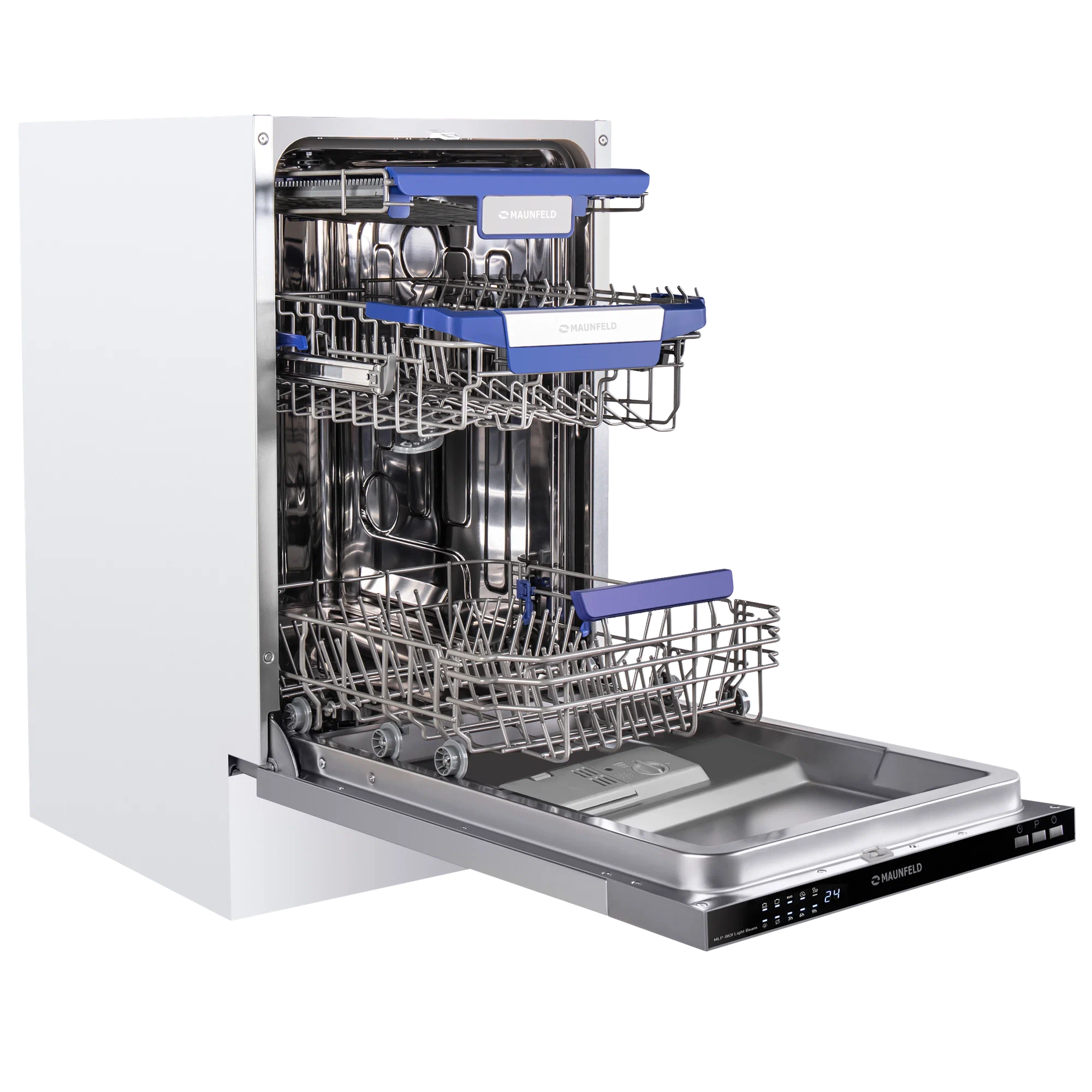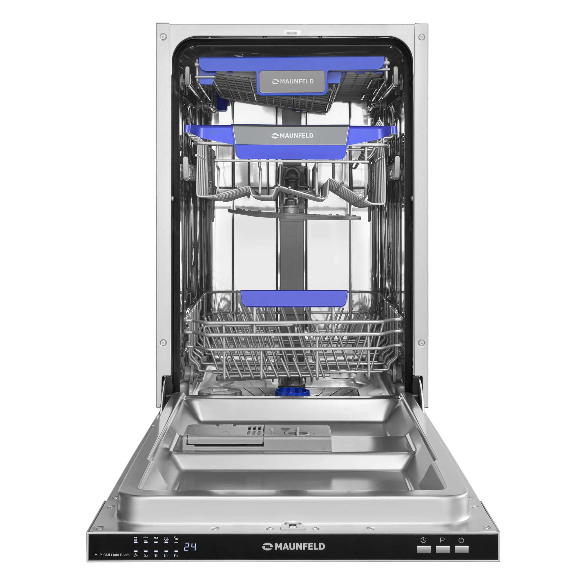 Посудомоечная машина MAUNFELD MLP-083I Light Beam - это современное и функциональное устройство, которое станет незаменимым помощником на вашей кухне.MAUNFELD - это бренд, который зарекомендовал себя на рынке бытовой техники. Продукция этого производителя отличается высоким качеством, надежностью и долговечностью.Модель MLP-083I Light Beam выполнена в стильном и современном дизайне, который подойдет к любому интерьеру. Цвет корпуса - нержавеющая сталь, что придает устройству элегантный и современный вид.Посудомоечная машина имеет вместимость 10 комплектов посуды, что позволяет одновременно мыть большое количество посуды.Устройство оснащено электронным управлением, что обеспечивает удобство и простоту использования. В комплекте идет корзина для столовых приборов, что позволяет экономить место на кухне.Особенностью данной модели является наличие третьего уровня загрузки, что позволяет размещать в машине даже большие кастрюли и сковородки.Машина оснащена пятью программами мойки, включая интенсивную, стандартную, экономичную и быструю. Это позволяет выбрать оптимальный режим для каждого типа посуды.Класс энергопотребления A++, что говорит о низком расходе электроэнергии. Максимальная потребляемая мощность составляет 2100 Вт, а уровень шума при работе - всего 49 дБ.Безопасность использования обеспечивается наличием защиты от детей и индикацией работы на полу с помощью луча.В комплекте с посудомоечной машиной идет проводное соединение устройств, что обеспечивает простоту и удобство подключения.Выбирая посудомоечную машину MAUNFELD MLP-083I Light Beam, вы получаете надежного помощника на вашей кухне, который обеспечит безупречное качество мойки и сушки посуды, а также сэкономит ваше время и энергию.
