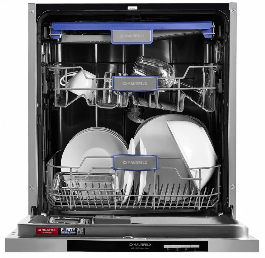 Благодаря использованию специально разработанных корзин и дополнительного выдвижного лотка для столовых приборов MLP-123I Light Beam позволяет вымыть 14 комплектов посуды.