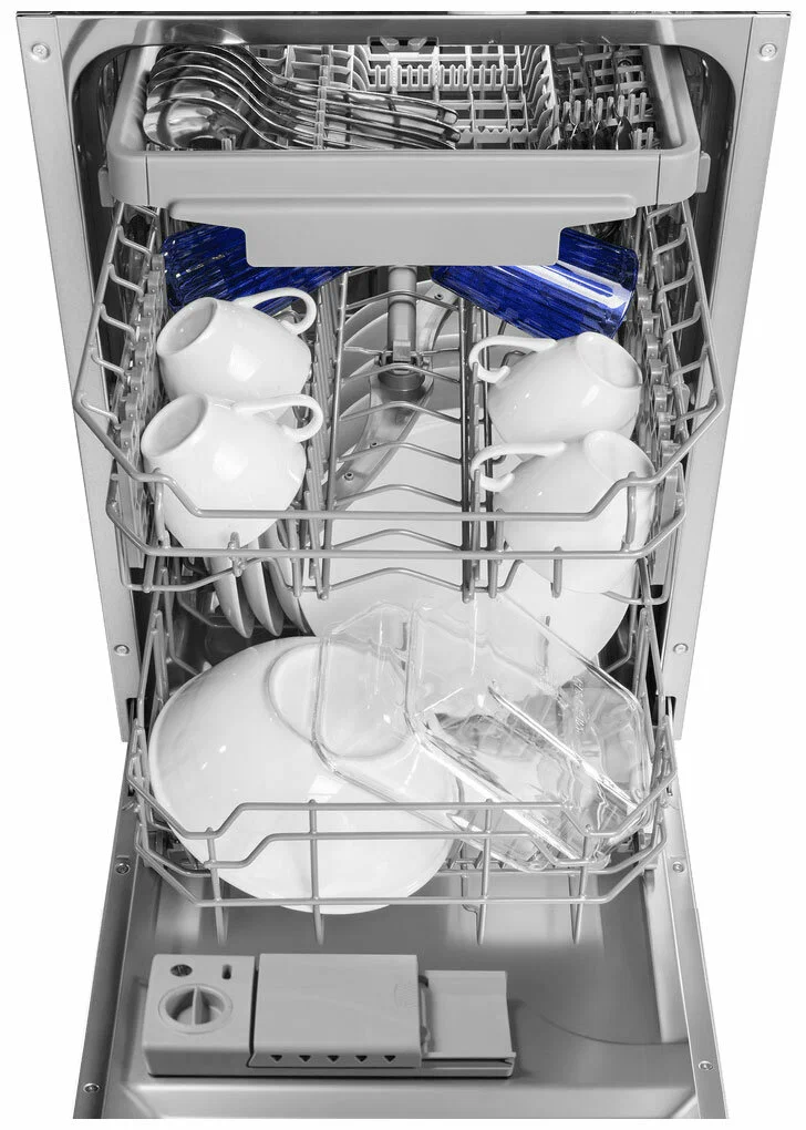- Особенности: дисплей, использование средств 3 в 1, регулируемая по высоте корзина для посуды