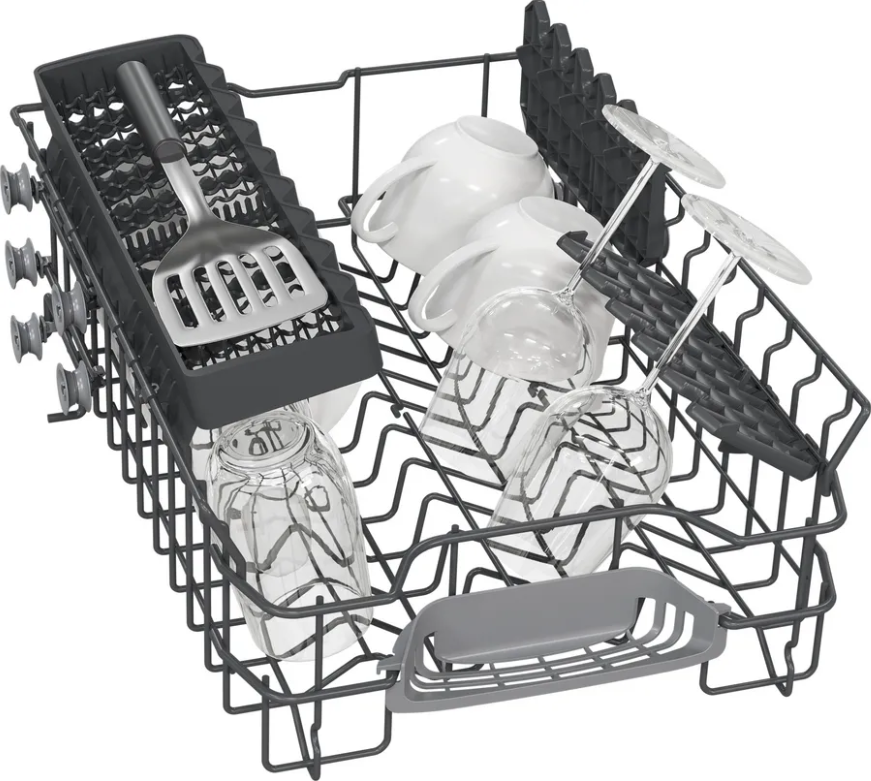 Встраиваемая посудомоечная машина Siemens SR61HX22KE является воплощением современной технологии, эффективности и стильного дизайна. Это устройство, которое сочетает в себе функциональность и эстетику, предоставляя вам безупречно чистую посуду при минимальном уровне шума. С первого взгляда на Siemens SR61HX22KE бросается в глаза его современный и элегантный дизайн. Машина выполнена в классическом стиле, что позволяет ей гармонично вписываться в любой интерьер кухни. Фронтальная панель украшена стильным черным стеклом, которое придает устройству изысканный и роскошный вид. Экран и кнопки управления интуитивно понятны и легки в использовании.