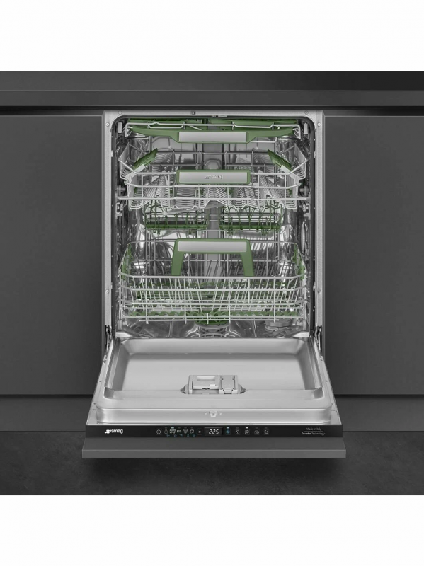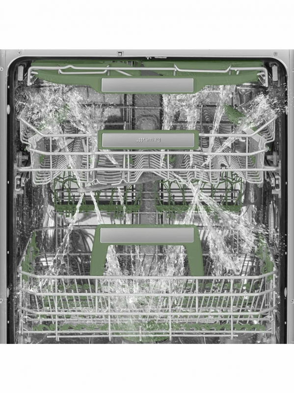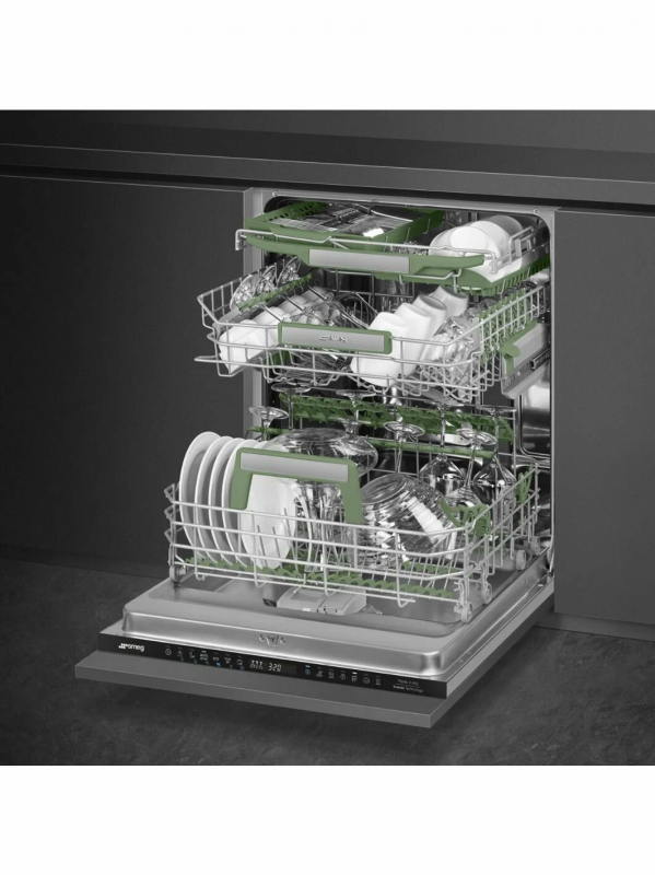 Полное и глубокое покрытие благодаря усовершенствованному движению разбрызгивателя — инновационное решение, запатентованное компанией Smeg. Система автоматического открывания дверцы Dry Assist+ в конце цикла обеспечивает быструю и энергоэффективную сушку. Гибкая третья корзина обеспечивает дополнительное пространство, адаптируясь к загрузке для размещения различных типов поскды, обеспечивая оптимальную организацию и эффективное использование внутреннего пространства. Плавно движущаяся дверца для оптимальной интеграции в дизайн кухни. Более плавное и стабильное выдвижение корзин - Телескопические направляющие Extra Glide. Максимальный контроль благодаря проецируемой на пол подсветке, которая показывает, когда посудомоечная машина работает и когда цикл завершен - Active Light (луч на полу)