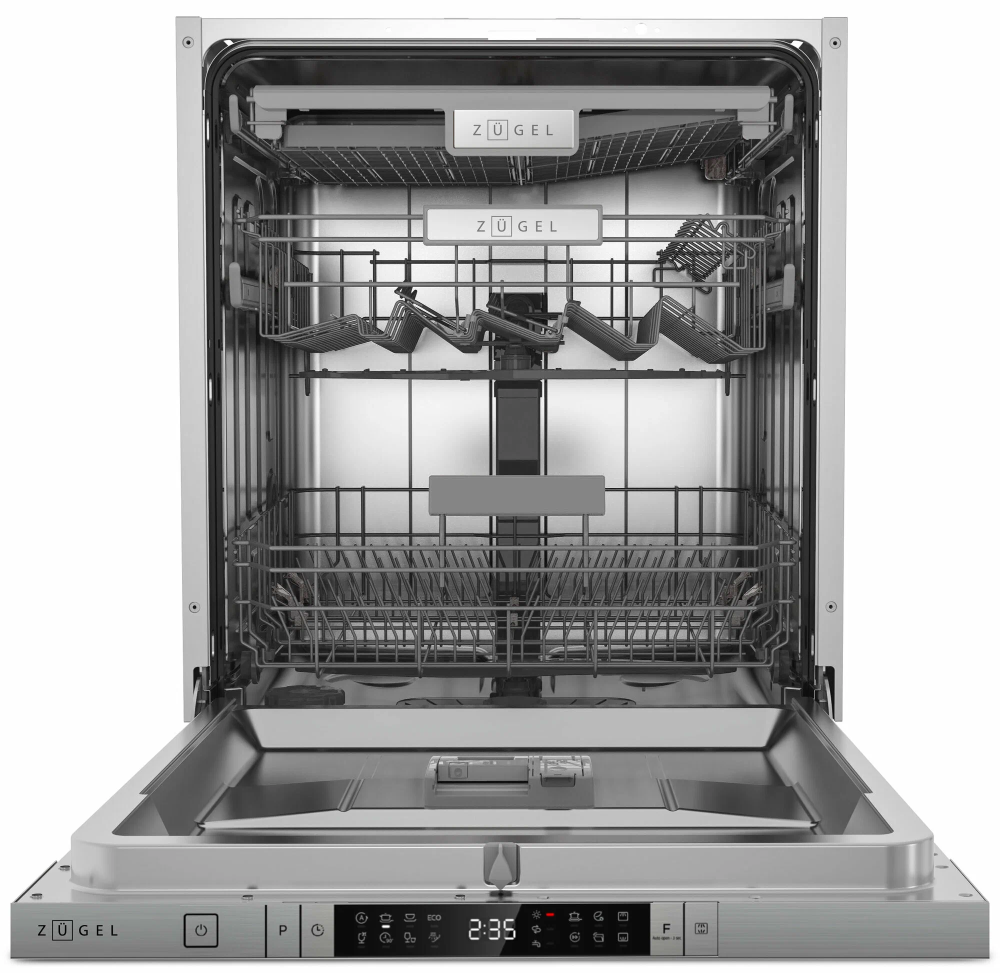Встраиваемая посудомоечная машина ZUGEL ZDI608 - это полнофункциональное устройство, которое станет незаменимым помощником на вашей кухне.ZUGEL ZDI608 оснащена инверторным двигателем, который обеспечивает более тихую и эффективную работу. Максимальная потребляемая мощность составляет 2100 Вт, а расход воды - 9,8 л. Уровень шума при работе - всего 42 дБ, что делает ее практически бесшумной.Машина имеет 8 программ мойки, включая автоматические, интенсивные, деликатные и экспресс-программы. Вместимость составляет 14 комплектов посуды, что позволяет мыть большое количество посуды за один раз.Особенностью данной модели является наличие дисплея, поддона для столовых приборов, внутреннего освещения, автоматического открывания двери, отсрочки запуска, использования средств 3 в 1, таймера, отключения звукового сигнала, возможности добавления посуды после запуска.ZUGEL ZDI608 имеет 5 температурных режимов и 8 программ мойки. Управление осуществляется электронным способом, а максимальное время отсрочки запуска составляет 24 часа.Безопасность обеспечивается защитой от протечек, автоотключением при отсутствии воды и индикатором работы на полу.В комплекте с машиной идет корзина для столовых приборов. Размеры устройства составляют 55х59,8х81,5 см, а вес - 45,3 кг.Встраиваемая посудомоечная машина ZUGEL ZDI608 - это сочетание функциональности, удобства и безопасности.