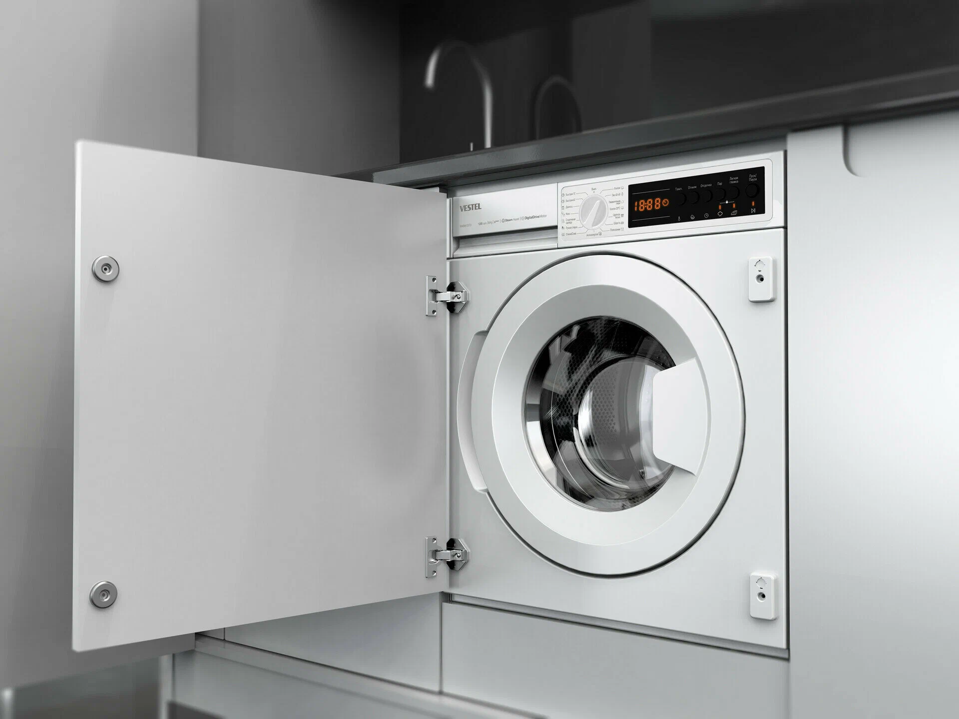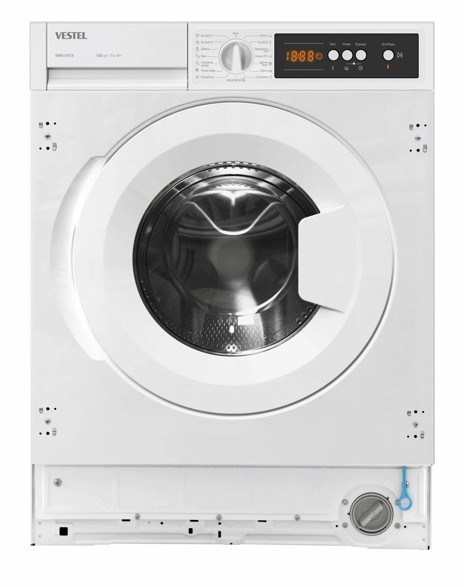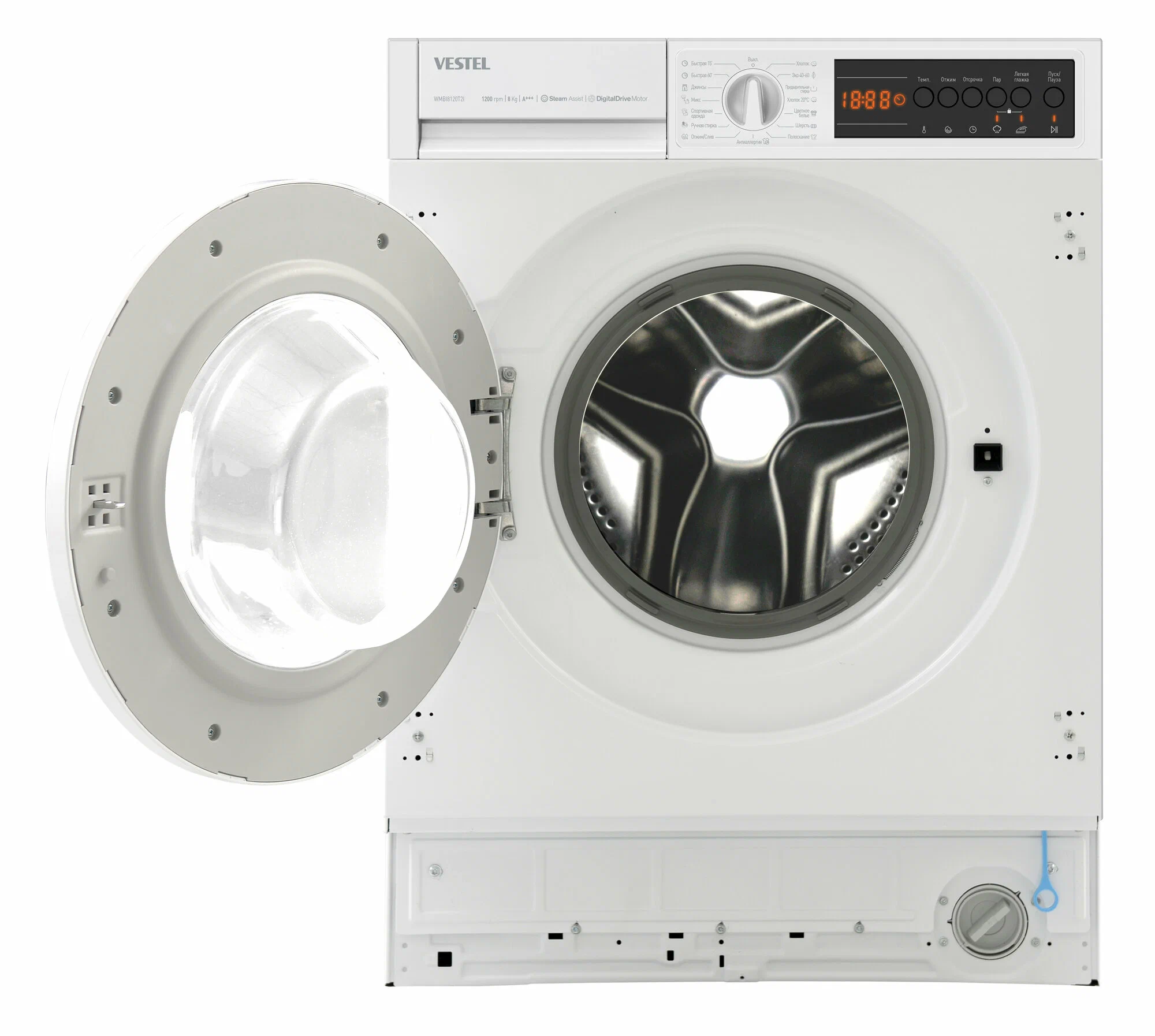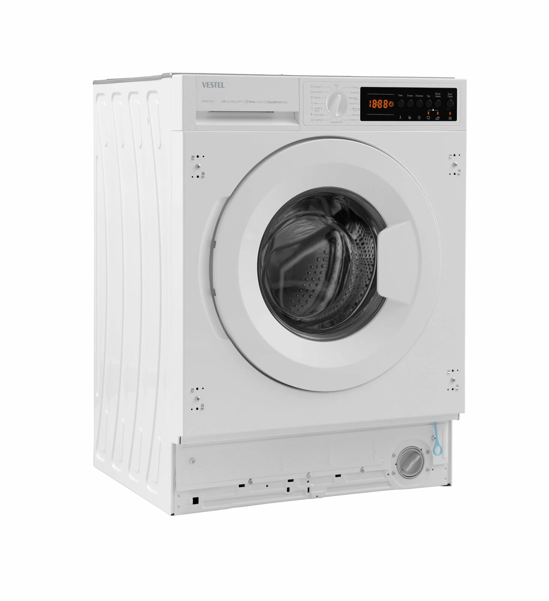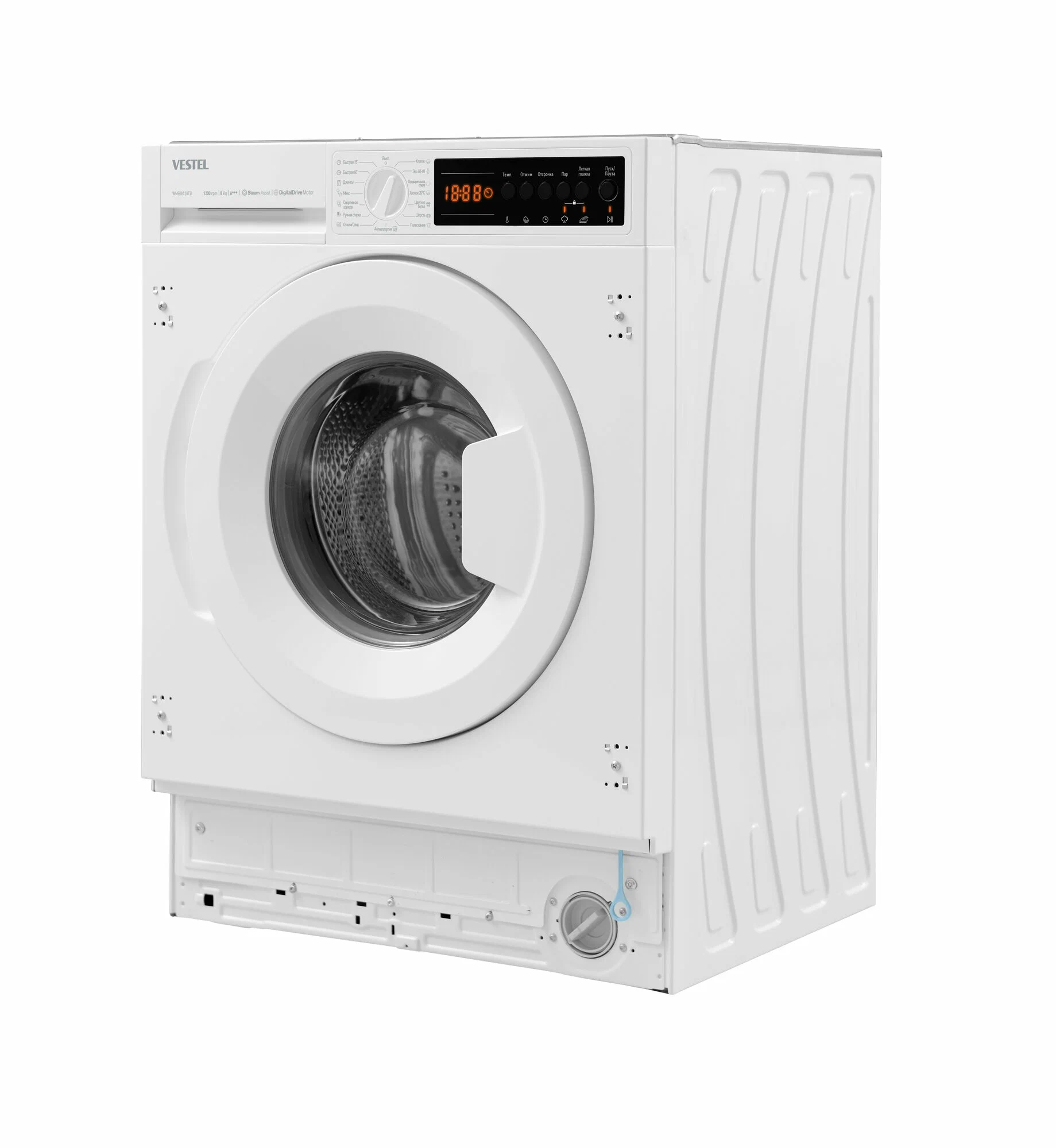 Стиральная машина встраиваемая Vestel WMBI8120T2I обладает расширенными возможностями и удобством в использовании, делая процесс стирки более эффективным и менее затратным. Стиральная машина автомат Vestel предоставляет превосходное качество стирки с максимальной загрузкой в 8 кг и скоростью отжима до 1200 об/мин, что делает ее идеальным выбором для современной семьи.Основные характеристики:Максимальная загрузка: 8 кг сухого белья.Мощность: 2100 Вт при напряжении 220–240 В и частоте 50 Гц.Количество программ: 15, включая специальные режимы для различных типов тканей.Размеры: Высота 817,4 мм, Ширина 597,4 мм, Глубина 544,3 мм.Дополнительные функции и технологии:Выбор температуры и скорости отжима: Пользователь может легко настроить температуру воды и скорость отжима для каждой стирки.Отложенный запуск: Настройте начало стирки на удобное время до 23 часов вперед.Программа антиаллергия: Для тщательного удаления остатков моющего средства используется специальная программа полоскания.Легкая глажка и быстрая стирка: Уменьшает мятость белья и сокращает время стирки.Технология Steam Assist: Уменьшает складки и уничтожает микробы с помощью пара.Инновационные решения:Инверторный двигатель Digital Drive: Обеспечивает тихую работу и снижение потребления энергии.Система контроля дисбаланса загрузки: Автоматически регулирует скорость отжима, минимизируя вибрацию и шум.Новый корпус Boomerang: Улучшенная конструкция корпуса снижает вибрацию и увеличивает устойчивость.Разборный бак: Позволяет заменять подшипники, увеличивая срок службы машины стиральной.Безопасность:Функция блокировки от детей: Защищает настройки стирки от случайных изменений.Vestel WMBI8120T2I - это встраиваемая стиральная машина, которая предлагает удобство и экономию, а также способность адаптироваться к вашим потребностям, обеспечивая идеальный уход за вашим бельем с каждой стиркой.