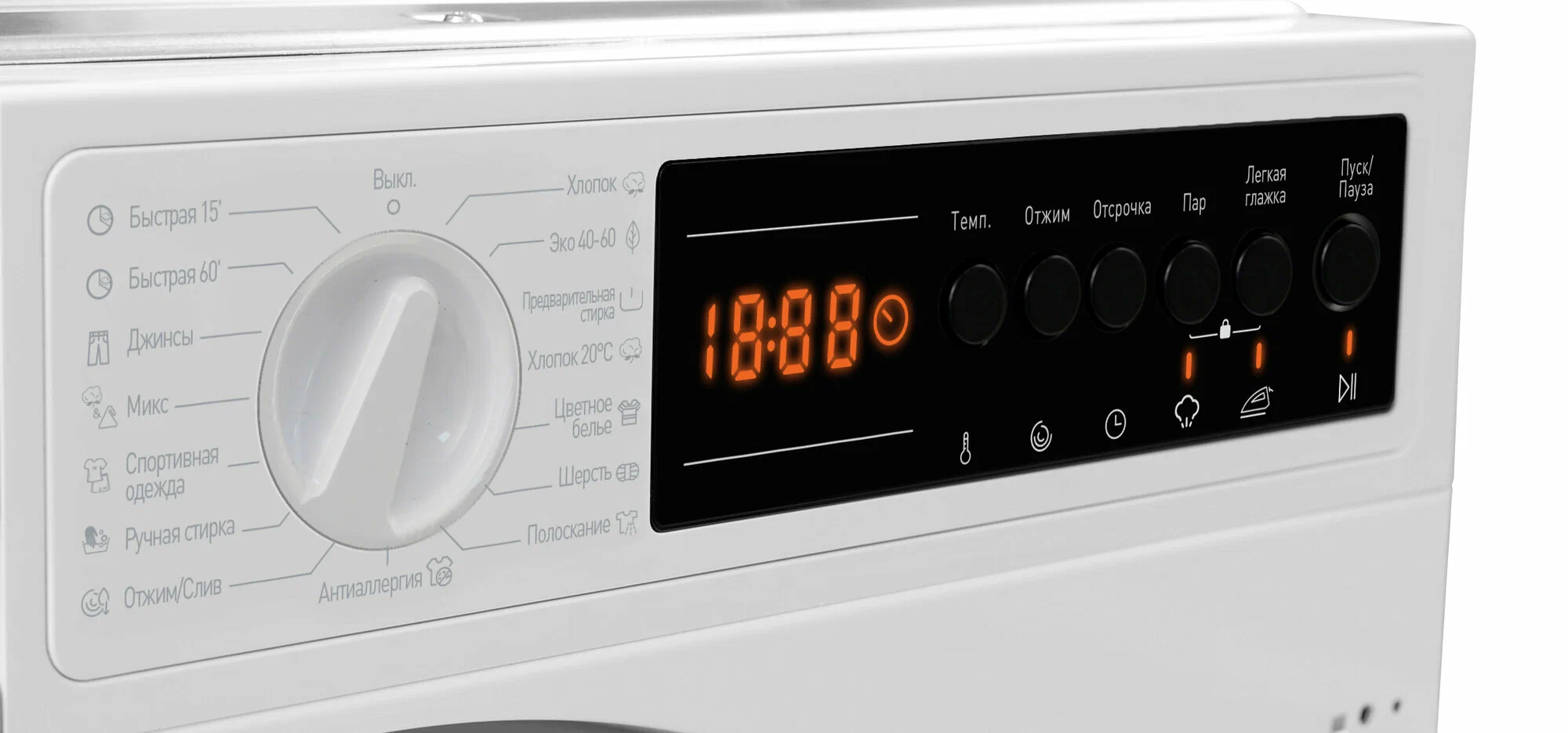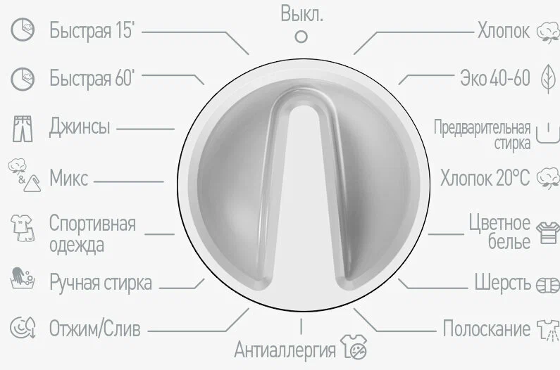 Дополнительные функции: отложенный старт, сигнал окончания стирки