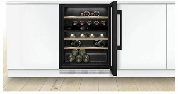Винные шкафы Bosch оснащены качественными полками из европейского дуба, которые надежно удерживают бутылки на месте. Дерево гасит вибрации, возникающие при работе компрессора. Телескопические направляющие обеспечивают еще более удобный доступ к винам.