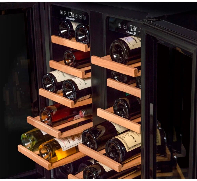 10 выдвижных полок из натурального дерева (Бук)Большие удобные ручки под цвет корпусаАнтивибрационная система (изоляция корпуса пенополиуретаном, компрессор на специальных сайлентблоках )Стеклянные дверцы с УФ-фильтромСенсорная панель управления с цифровым дисплеемLED подсветка, отключаемаяАктивный вентилятор для поддержания равномерной температуры внутри винного шкафаУгольный фильтр для нейтрализации посторонних запахов4 регулируемые по высоте ножки