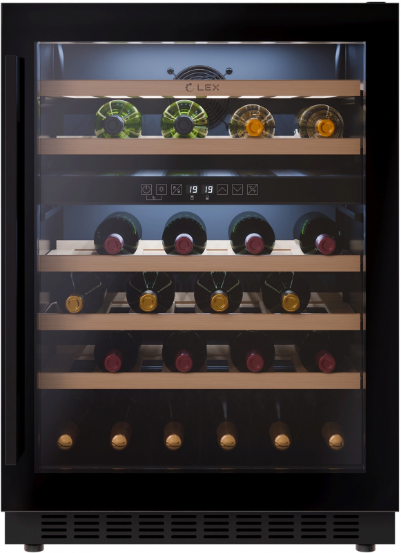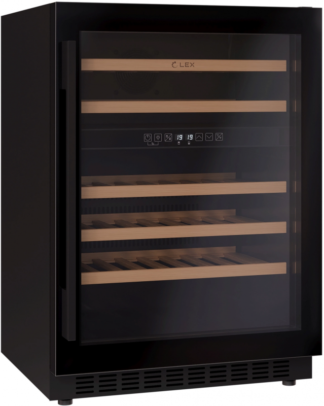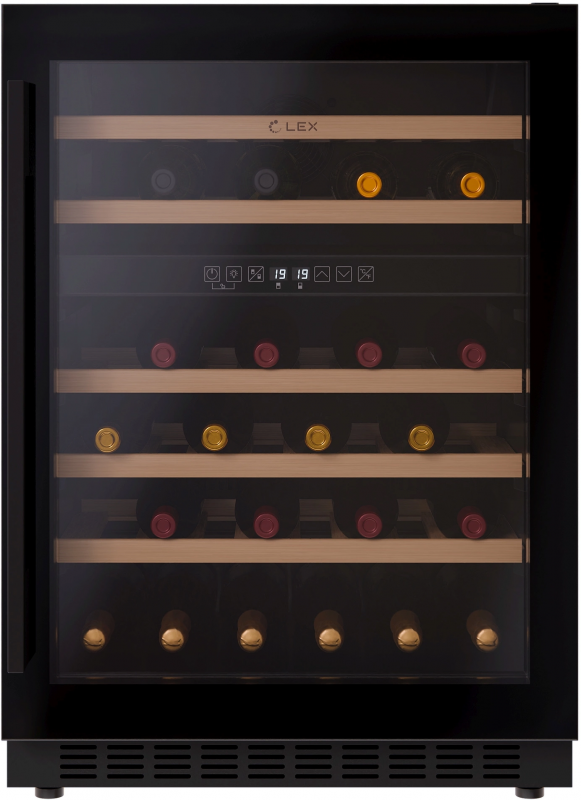 Бренд: LEX Хладагент: R600a Тип: Винный шкаф Модель: LWD6046BL dual zone PartNumber/Артикул Производителя: CHAT500010 Количество камер: однокамерный Количество дверей: 1 шт Тип управления: сенсорное Тип размораживания холодильной камеры: ручное Общий объем холодильника: 129 л Общий объем холодильной камеры: 129 л Уровень шума: 39 дБ Количество полок в холодильной камере: 5 Материал полок: дерево Потребление энергии: 144 кВт*ч/год Цвет: черный Высота товара: 82 см Вес товара: 42.4 кг Глубина товара: 57 см Габариты упаковки (ед) ДхШхВ: 0.66x0.625x0.88 м Вес упаковки (ед): 46.1 кг Объем упаковки (ед): 0.363 м3 Страна производства: Китай Тип дисплея: внутренний Материал дверей: стекло Вместимость бутылок: 46 Температура холодильной камеры min: 5 °С Температура холодильной камеры max: 20 °С Климатический класс: SN, ST Направление открывания двери: вправо Функции: отсутствует Индикация: температуры Особенности холодильника: LED подсветка, дисплей
