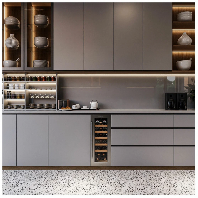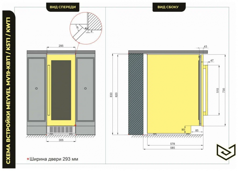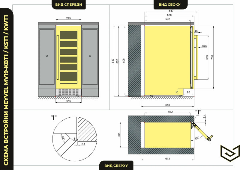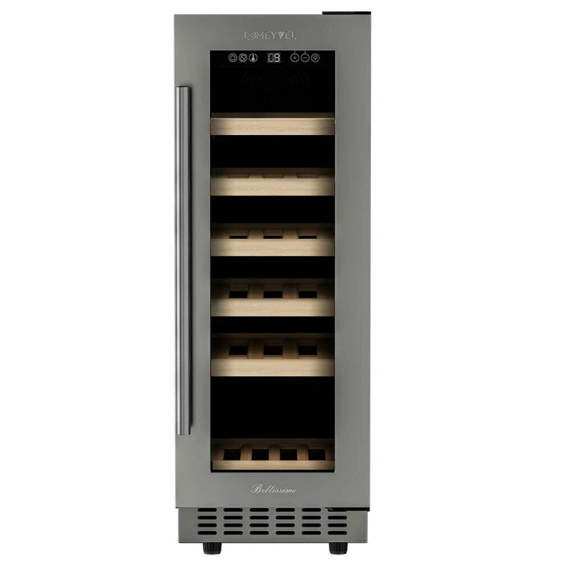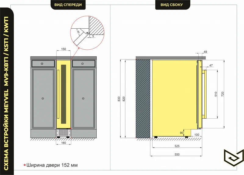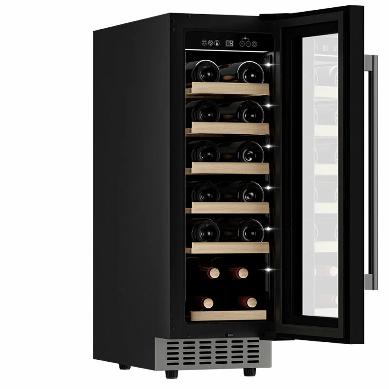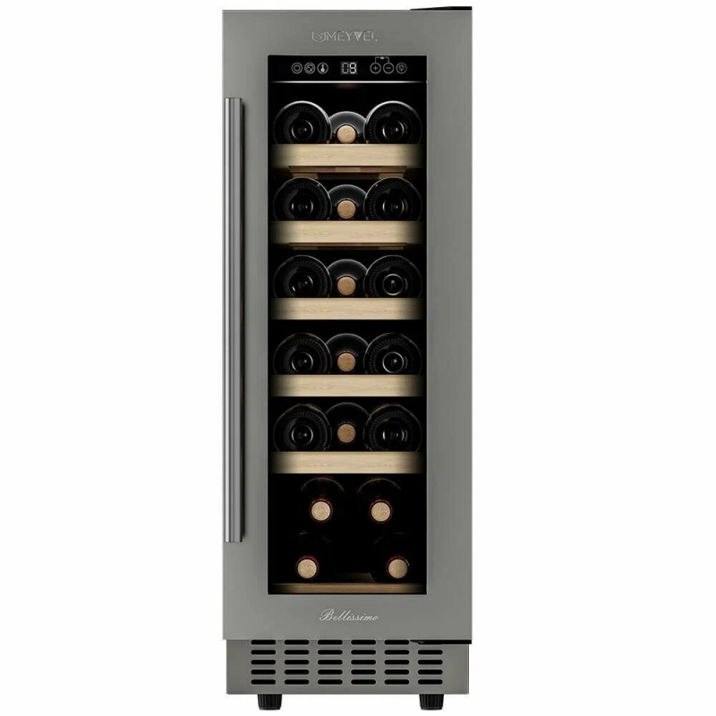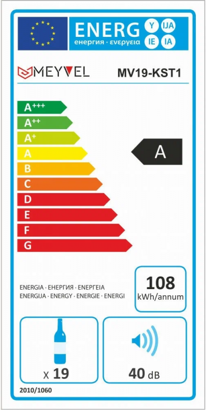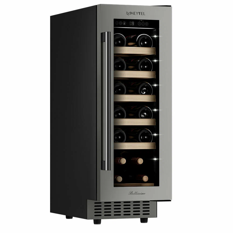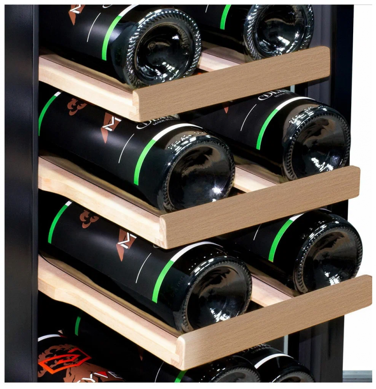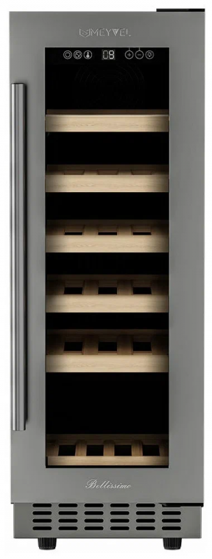 Модель MV19-KST1 имеет привлекательный внешний вид, сочетающий в себе неподвластное времени очарование натуральных материалов с высокотехнологичными системами сохранения продуктов. Винный холодильник Meyvel MV19-KST1 оснащен дверью с защитой от ультрафиолетовых лучей и отлично подойдет для хранения и созревания различных сортов вин. Динамическая система охлаждения обеспечивает оптимальную температуру для вина и сохраняет необходимую влажность внутри камеры.Особенности:Универсальный микроклиматКомпрессорный винный шкаф Meyvel MV19-KST1 обладает оптимальной вместимостью и даёт возможность разместить до 19 бутылок стандартного типа Бордо (0,75 л). Располагаются они на выдвижных полках из дерева. Внутреннее пространство шкафа поддерживает комфортную для вина температуру от 5C до 20C. Так же, эта модель поддерживает влажность в диапазоне 60-80, как в настоящем винном погребе.Сенсорный дисплейБыстро задавайте необходимую температуру для содержимого и управляйте всеми функциями холодильника с помощью интуитивно-понятного расположения клавиш на сенсорном дисплее.Комфортное расположениеMeyvel MV19-KST1 отлично подходит для расположения на любой кухне. Шкаф можно встроить под столешницу, а так же, перенавесить дверь для более удобного использования (петли входят в комплект).Преимущества:Вместимость 19 бутылок стандартного типа Бордо (0,75 л);Возможность как встроить шкаф под столешницу, так и установить отдельно;Углубленный цоколь;Температурный режим от 5C до 20C;Удобное сенсорное управление;Электронный термостат;Демонстрационное освещение;Панорамное освещение;Перенавешиваемая дверь (петли в комплекте);Регулируемые ножки;Тройное стекло с УФ-фильтром;Рама двери из бесшовной нержавеющей стали;Выдвижные полкиВажно:- прежде чем устанавливать винный шкаф, ознакомьтесь с указанными в инструкции показателями напряжения (В) и частоты (Гц) и убедитесь в том, что они совпадают с уровнем показателей в Вашем доме;- не наклоняйте винный шкаф более чем на 45;- не устанавливайте винный шкаф вблизи с нагревающимися электроприборами, а также в зоне прямого попадания солнечных лучей;- необходимо установить винный шкаф по уровню и отрегулировать зазоры между дверью и мебельным фасадом, чтобы не повредить их.Общие данные:Размеры:высота: 82 смширина: 29,5 смглубина: 57,8 смОбъем, л: 58Максимальное количество бутылок: 19Тип управления: электронныйКласс энергоэффективности: AКлиматический класс: N-ST (от 16C до 38C)Энергопотребление, кВт/год: 108Количество температурных зон: 1Диапазон температуры , C: от 5 до 20Тип системы охлаждения: компрессорныйВинное отделение:Количество полок: 6Тип полок: Выдвижные, Мини-полкаМатериал полок: Дерево (массив бука)Угольный фильтрLED освещениеПанорамное освещениеВид охлаждения: динамическоеАвтоматическая разморозкаДемонстрационное освещениеДополнительная информация:Тип управления: СенсорныйТермостат: электронныйУровень шума, дБ: 40Тип установки: Встраиваемый, ОтдельностоящийТип встраивания: Под столешницуВстроенная система вентиляцииДиапазон влажности, : 60-80Материал корпуса: стальЦвет корпуса: ЧёрныйУглублённый цокольРегулируемые ножкиПеренавешиваемая дверь: (петли в комплекте)Стекло: тройное с УФ-фильтромРамка двери: Бесшовная нержавеющая стальРучка двери: ЧёрнаяБлокировка панели управленияСигнализация отклонения температурыСигнал