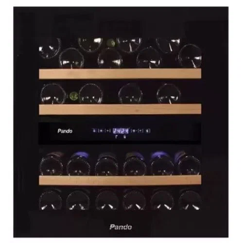 Винный холодильник Pando PVMAVP 60-23CRL W имеет две температурные зоны, в которых одновременно можно хранить разные сорта алкоголя и выставлять разные сочетания настроек. Он встраивается в нишу, что удобно, если у вас ограничен метраж помещения. Благодаря компактным размерам данная модель — отличный выбор для офиса, гостиничного номера. Количество бутылок, которое можно разместить с учетом полной комплектации и из расчета объема бутылки 0,75 л, — 23 шт.