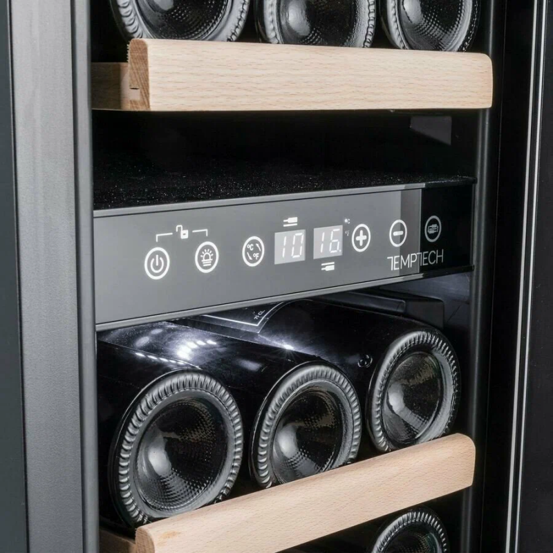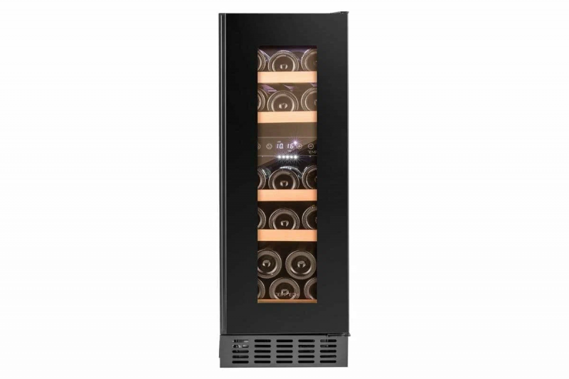 Винный шкаф с двумя температурными зонами (5-12°С, 12-20°С) и вместимостью до 17 бутылок вина. Благодаря двум температурным зонам у вас всегда есть готовое к подаче белое вино, игристое и красное вино в любое время! Стильный дизайн с черным стеклянным фасадом со встроенной ручкой, выдвижными буковыми полками и белым внутренним светодиодным освещением. С помощью сенсорной панели и цифрового дисплея вы получаете полный контроль над температурой и освещением. Благодаря стандартным размерам винный шкаф легко интегрируется в любую кухню. Винный шкаф также можно разместить отдельно, если вы пожелаете. Ваша винная коллекция надежно хранится при правильной и стабильной температуре, оптимальной влажности, низкой вибрации и чистом воздухе! Количество зон: две Температурный режим: +5.+20 °C (верх. +5.+12/нижн. +12.+20) Количество бутылок: 17 шт. (6 шт/11 шт) Условие эксплуатации: +16.+32 °C Возможность встроить: есть Хладагент: R600a (17 гр.) Охлаждение: динамическое Вид охлаждения: компрессорное Дверь (ШхВ): в черной раме со встроенной ручкой, стеклопакет с защитой от УФ Полки: 5 шт, деревянных выдвижных Подсветка: есть, LED (белая) Объем: 58 л. Внутренняя влажность: 30-60 % (ванночка с водой, в комплекте нет) Потребляемая мощность: 88 Вт Энергопотребление в сутки: 0,255 кВт Энергетический класс: F (по таблице классов с 2021г) Номинальное напряжение: 220 В, 50 Гц Корпус: черный, металлический Разморозка: автоматическая Угольный фильтр: нет Зимний режим: нет Перевеска двери: есть Замок: нет Управление: 39 дБ Уровень шума: сенсорное Размеры (ШхГхВ): 295х570х813 мм Размеры ниши (ШхГхВ): 305х590х820 мм Масса (без упк./в упк.): 29/31 кг Размер в упаковке (ШхГхВ): 330х635х855 мм