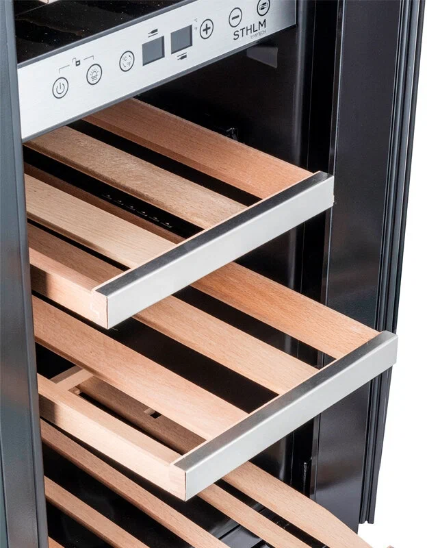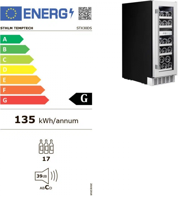 Особенности:Винный шкаф из серии STHLM разработан специально для компании ELON и предназначен для встройки под столешницу. ELON — крупнейшая розничная сеть Северной Eвропы с магазинами в Швеции, Норвегии, Дании, Финляндии и Исландии.Ваша винная коллекция хранится в надежном месте с правильной и стабильной температурой, оптимальной влажностью, низким уровнем вибрации и чистым воздухом!Две температурные зоны (5-12, 12-20°C), вместимость до 17 винных бутылок.Стильный дизайн с дверцей из нержавеющей стали.Тройное стекло дверцы снижает теплопотери.Сенсорная панель и цифровой дисплей.Внутренняя белая светодиодная подсветка.Защита Вашего вина:— Запах может проникнуть через пробку и ухудшить качество вина. В данной модели винного холодильника использованы неокрашенные деревянные выдвижные полки из необработанного бука c отделкой из нержавеющей стали, не выделяющие запаха.— Ваша винная коллекция надежно хранится за дверцей с УФ-фильтром. Она защищает Ваше вино от вредных ультрафиолетовых лучей и тепла, которые могут попасть внутрь прибора.— Винный шкаф Temptech STX30DS оборудован вентиляторами, обеспечивающими в нем циркуляцию воздуха и поддерживающими постоянную и стабильную температуру.— Повторное использование конденсата поддерживает оптимальную влажность.— Компрессор прибора опирается на ножки из специального материала, который гарантирует, что вибрации от его работы не распространятся на весь шкаф и Ваше вино.Паспорт продукта на сайте EPRELХарактеристики:Страна марки: НорвегияСерия: STHLMЦвет дверцы: Нержавеющая стальВысота дверцы (мм): 715Уровень шума (дБ): 39Габариты прибора (ШхВхГ): 295x813x570Количество камер: 1Температурных зон: 2Диапазон температур: 5-12, 12-20°CКоличество полок: 5Напряжение (В): 220-240Годовое энергопотребление (кВт*ч): 135Объём (л): 58Перенавешиваемая дверь: ДаМасса, нетто (кг): 29Замок двери: НетУФ-фильтр: ДаУгольный фильтр: НетПодсветка: Да (белая)