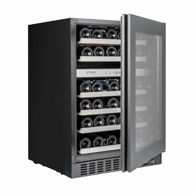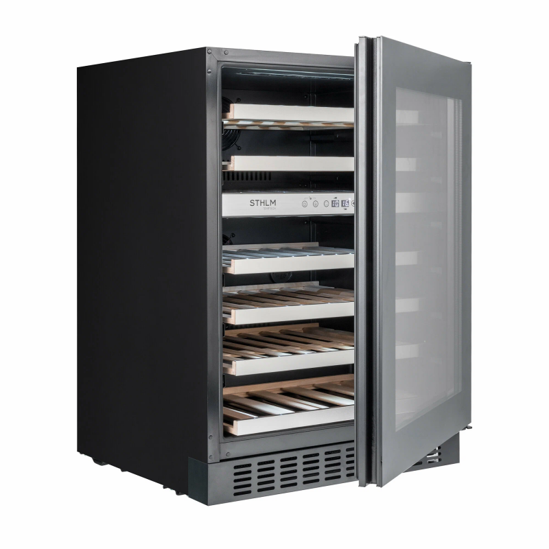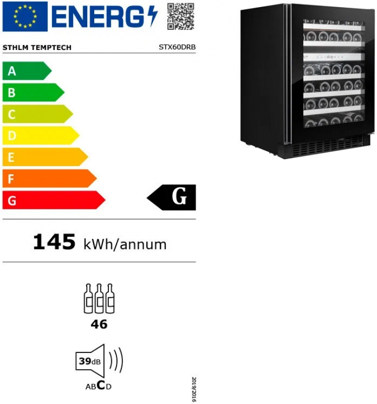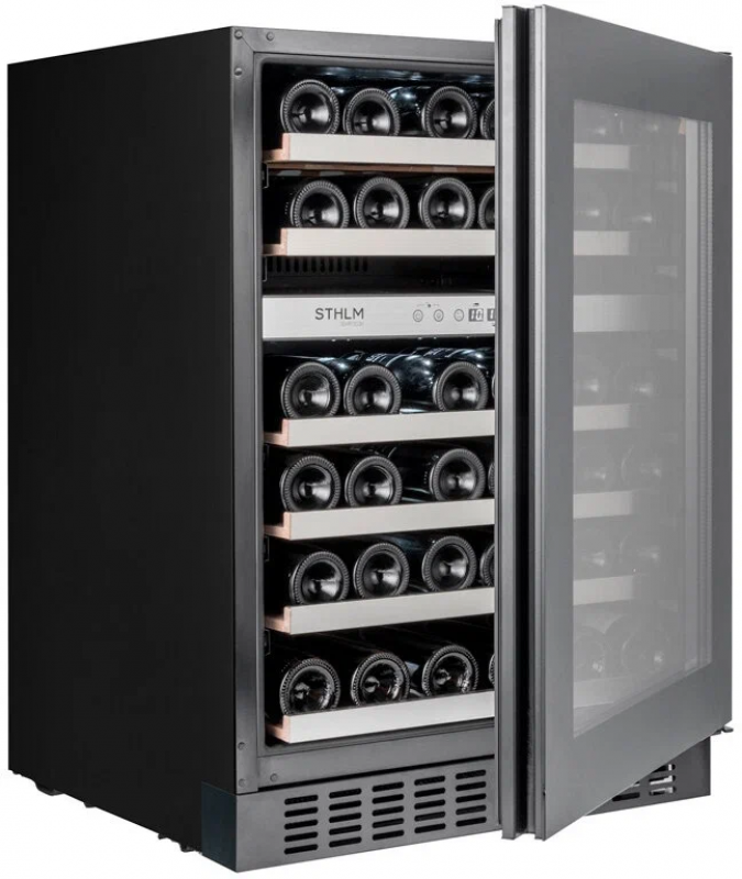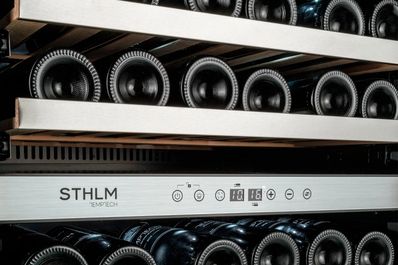 Основные характеристикиВинный шкаф из серии STHLM разработан специально для компании ELON и предназначен для встройки под столешницу. ELON — крупнейшая розничная сеть Северной Eвропы с магазинами в Швеции, Норвегии, Дании, Финляндии и Исландии.Ваша винная коллекция хранится в надежном месте с правильной и стабильной температурой, оптимальной влажностью, низким уровнем вибрации и чистым воздухом!Две температурные зоны (5-12, 12-20°C), вместимость до 46 винных бутылок.Стильный дизайн с дверцей из стекла чёрного цвета.Тройное стекло дверцы снижает теплопотери.Сенсорная панель и цифровой дисплей.Внутренняя белая светодиодная подсветка.Технические характеристикиМарка: TemptechМодель: STX60DRBСтрана марки: НорвегияСтрана производства: КитайГарантийный срок: 2 годаСистема охлаждения: КомпрессорВозможность встраивания: ДаСерия: STHLMВместимость: 46Количество камер: 1Температурных зон: 2Диапазон температур: 5-12, 12-20°CКоличество полок: 6Объём (л): 145Перенавешиваемая дверь: ДаЗамок двери: НетУФ-фильтр: ДаУгольный фильтр: ДаПодсветка: Да (белая)Цвет корпуса: ЧёрныйЦвет дверцы: ЧёрныйВысота дверцы (мм): 715Энергетический класс: GКлиматический класс: N-STХладагент: R600a (29 г)Уровень шума (дБ): 39Габариты прибора (ШхВхГ): 595x813x570Габариты упаковки (ШхВхГ): 650x880x650Напряжение (В): 220-240Мощность (Вт): 100Годовое энергопотребление (кВт*ч): 145Масса, нетто (кг): 46Масса, брутто (кг): 50Защита Вашего винаЗапах может проникнуть через пробку и ухудшить качество вина. В данной модели винного холодильника использованы неокрашенные деревянные выдвижные полки из необработанного бука c отделкой из нержавеющей стали, не выделяющие запаха.Ваша винная коллекция надежно хранится за дверцей с УФ-фильтром. Она защищает Ваше вино от вредных ультрафиолетовых лучей и тепла, которые могут попасть внутрь прибора.Винный шкаф Temptech STX30DRB оборудован вентиляторами, обеспечивающими в нем циркуляцию воздуха и поддерживающими постоянную и стабильную температуру.Повторное использование конденсата поддерживает оптимальную влажность.Компрессор прибора опирается на ножки из специального материала, который гарантирует, что вибрации от его работы не распространятся на весь шкаф и Ваше вино.