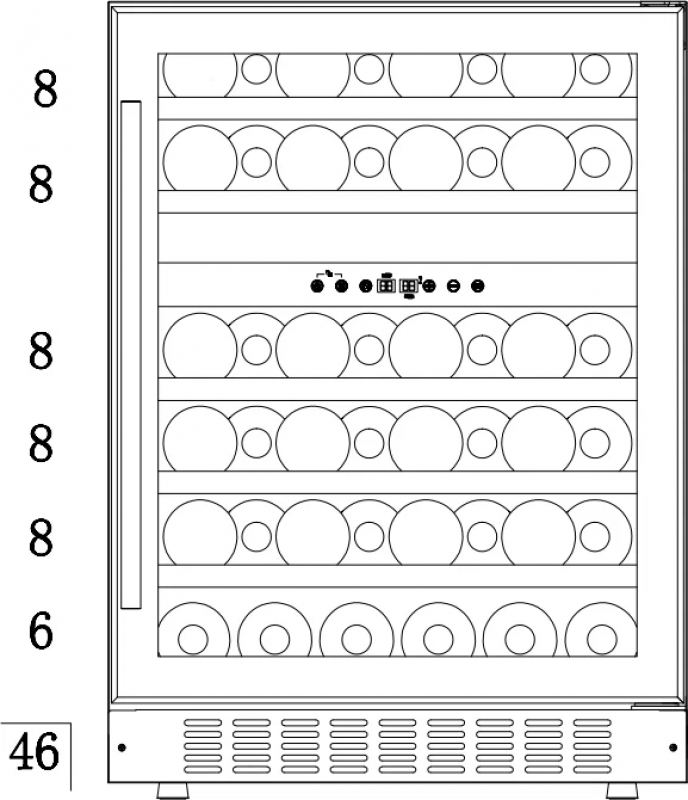 Емкость винного шкафа, бут.: 46