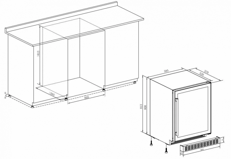 Размеры, мм (ШхГхВ): 595x570x813