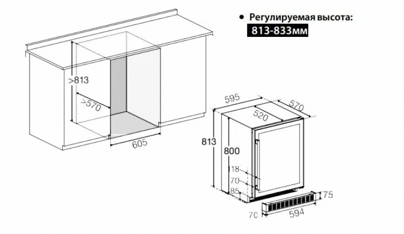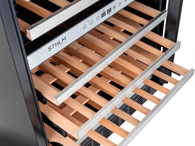 Основные характеристикиВинный шкаф из серии STHLM разработан специально для компании ELON и предназначен для встройки под столешницу. ELON — крупнейшая розничная сеть Северной Eвропы с магазинами в Швеции, Норвегии, Дании, Финляндии и Исландии.Ваша винная коллекция хранится в надежном месте с правильной и стабильной температурой, оптимальной влажностью, низким уровнем вибрации и чистым воздухом!Две температурные зоны (5-12, 12-20°C), вместимость до 46 винных бутылок.Стильный дизайн с дверцей из нержавеющей стали.Тройное стекло дверцы снижает теплопотери.Сенсорная панель и цифровой дисплей.Внутренняя белая светодиодная подсветка.Технические характеристикиМарка: TemptechМодель: STX60DSСтрана марки: НорвегияСтрана производства: КитайГарантийный срок: 2 годаСистема охлаждения: КомпрессорВозможность встраивания: ДаСерия: STHLMВместимость: 46Количество камер: 1Температурных зон: 2Диапазон температур: 5-12, 12-20°CКоличество полок: 6Объём (л): 145Перенавешиваемая дверь: ДаЗамок двери: НетУФ-фильтр: ДаУгольный фильтр: ДаПодсветка: Да (белая)Цвет корпуса: ЧёрныйЦвет дверцы: Нержавеющая стальВысота дверцы (мм): 715Энергетический класс: GКлиматический класс: NХладагент: R600a (29 г)Уровень шума (дБ): 39Габариты прибора (ШхВхГ): 595x813x570Габариты упаковки (ШхВхГ): 650x880x650Напряжение (В): 220-240Мощность (Вт): 100Годовое энергопотребление (кВт*ч): 145Масса, нетто (кг): 46Масса, брутто (кг): 50Защита Вашего винаЗапах может проникнуть через пробку и ухудшить качество вина. В данной модели винного холодильника использованы неокрашенные деревянные выдвижные полки из необработанного бука c отделкой из нержавеющей стали, не выделяющие запаха.Ваша винная коллекция надежно хранится за дверцей с УФ-фильтром. Она защищает Ваше вино от вредных ультрафиолетовых лучей и тепла, которые могут попасть внутрь прибора.Винный шкаф Temptech STX30DRB оборудован вентиляторами, обеспечивающими в нем циркуляцию воздуха и поддерживающими постоянную и стабильную температуру.Повторное использование конденсата поддерживает оптимальную влажность.Компрессор прибора опирается на ножки из специального материала, который гарантирует, что вибрации от его работы не распространятся на весь шкаф и Ваше вино.