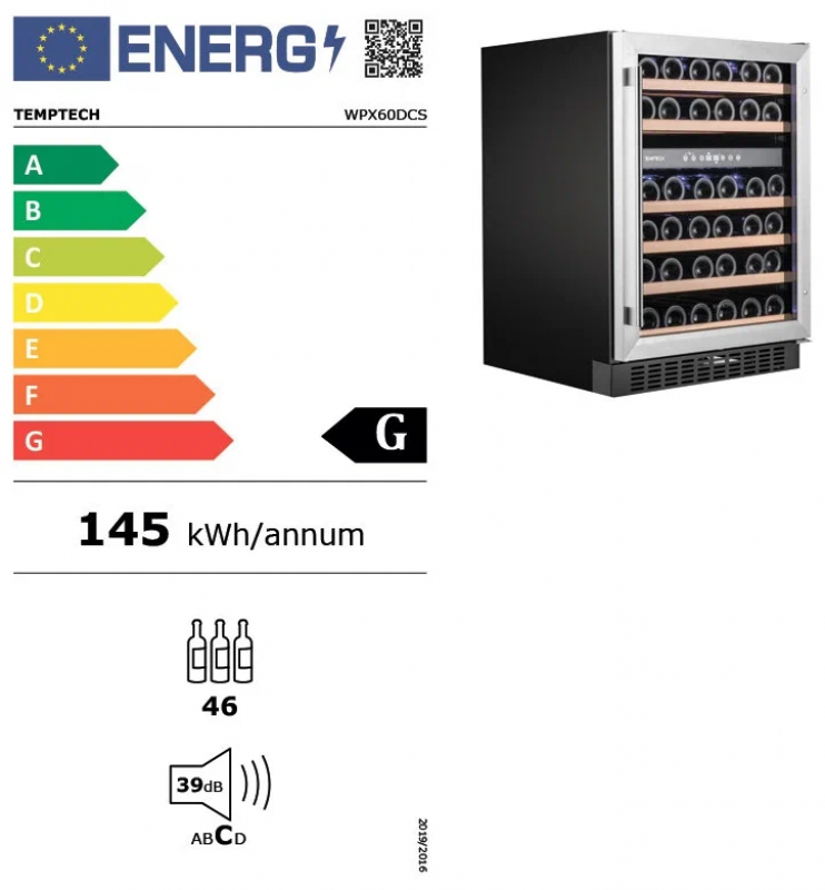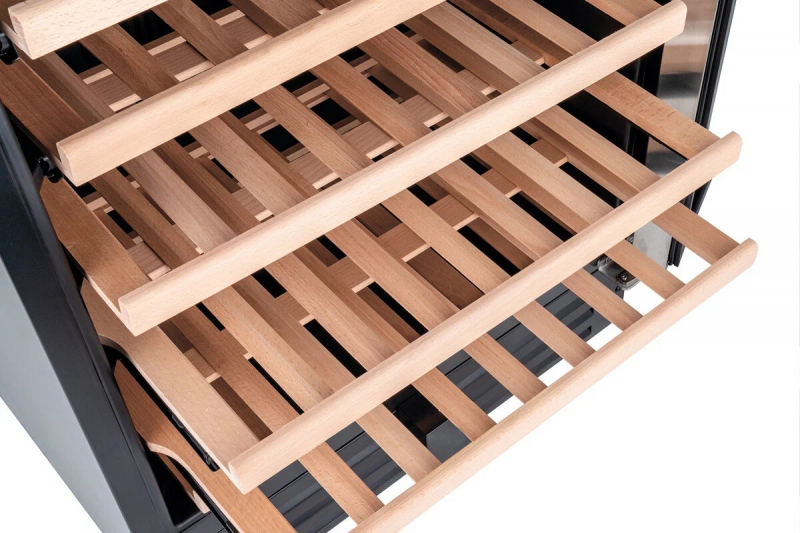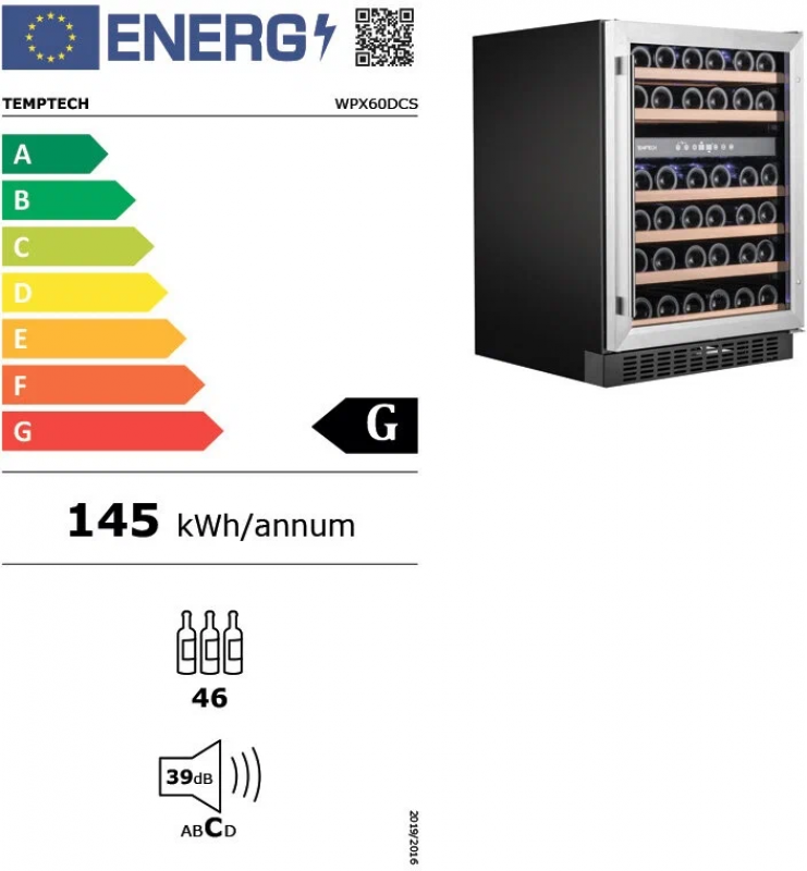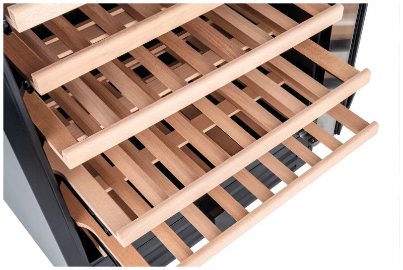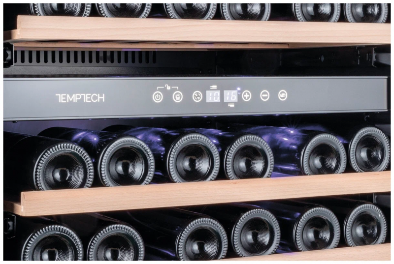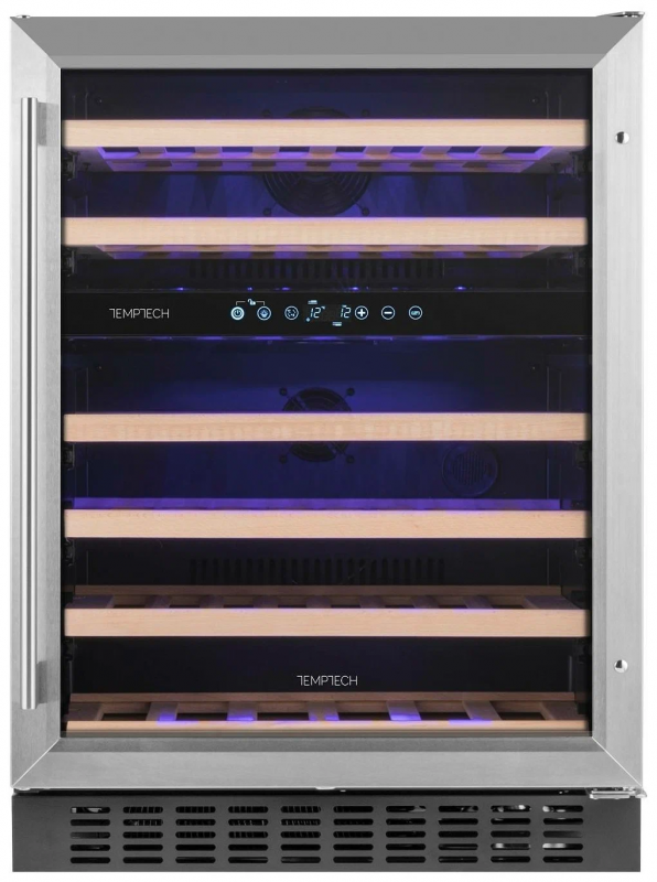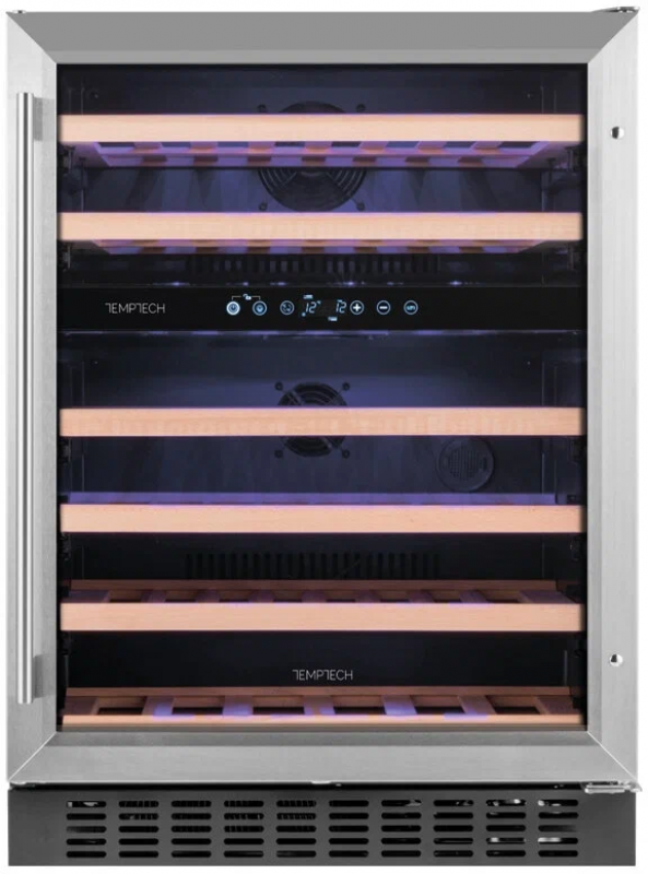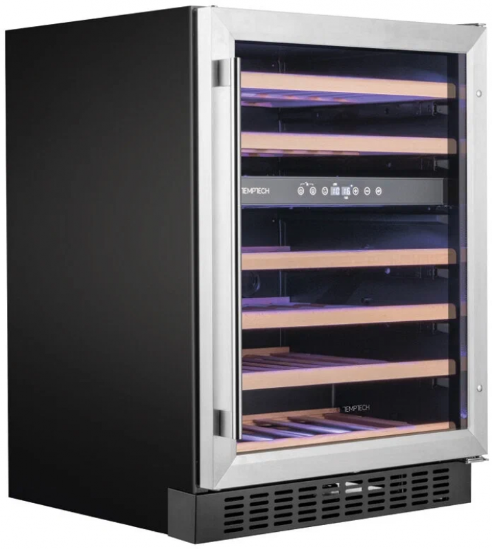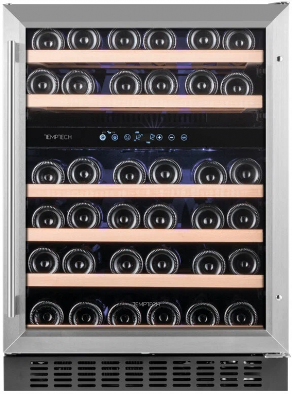 Винный холодильник для встройки на кухне под столешницуВинный шкаф серии Premium с фасадом из нержавеющей стали вместимостью 46 бутылок и двумя температурными зонами (5-12 ° C, 12-20 ° C).Выдвижные полки из массива дерева(бук) обеспечивают хороший обзор винной коллекции.Сенсорная панель панель управления с индикатором температуры.Правильная и стабильная температураПри хранении с нужной температурой Ваше вино всегда готово к употреблению, что удобно для Вас и Ваших гостей! В винном шкафу с двумя температурными зонами у Вас есть возможность хранить вино при двух разных температурах, например, белое вино и игристое вино при 8 ° C, а красное вино при 12 ° C. Две температурные зоны физически разделены в середине винного шкафа. Холодная зона находится вверху винного шкафа, а теплая зона — внизу.Защитные условия храненияВаша винная коллекция надежно хранится за дверцей с УФ-фильтром, которая защищает вино от вредных ультрафиолетовых лучей и тепла.Винный шкаф оборудован вентиляторами, которые обеспечивают циркуляцию воздуха. Конденсат в винном шкафу используется повторно и, таким образом, поддерживает оптимальную влажность в винном шкафу, а фильтр с активированным углем обеспечивает свежий и чистый воздух в холодильнике для вина Temptech WPX60DCSЭффективное охлаждение с небольшой вибрациейОб охлаждении винного шкафа заботится тихий компрессор с низким уровнем шума. Компрессор не только бесшумный, но и опирается на наши специально разработанные ножки, которые защищают вино от вредных вибраций.Основные характеристикиМарка: TemptechМодель: WPX60DCSСтрана марки: НорвегияСтрана производства: КитайГарантийный срок: 2 годаСистема охлаждения: КомпрессорВозможность встраивания: ДаСерия: PremiumВместимость: 46Количество камер: 1Температурных зон: 2Диапазон температур: 5-12°C, 12-20°CКоличество полок: 6Объём (л): 145Перенавешиваемая дверь: ДаЗамок двери: НетУФ-фильтр: ДаУгольный фильтр: ДаПодсветка: Да (синяя)Цвет корпуса: ЧёрныйЦвет дверцы: Нержавеющая стальВысота дверцы (мм): 715Энергетический класс: GКлиматический класс: N, STХладагент: R600a (30 г)Уровень шума (дБ): 39Габариты прибора (ШхВхГ): 595x813x570Габариты упаковки (ШхВхГ): 660x880x625Напряжение (В): 220-240Мощность (Вт): 100Годовое энергопотребление (кВт*ч): 145Масса, нетто (кг): 46Масса, брутто (кг): 50