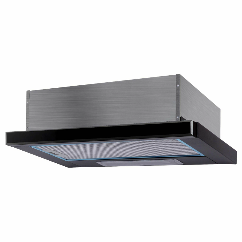 Ширина 60 смСледует учитывать, что размеры вытяжки должны соответствовать размерам рабочей поверхности, над которой она устанавливается. Вытяжка будет работать эффективно лишь при условии, что ее воздухоприемный зонт полностью закрывает плоскость варочной поверхности. Вытяжка, размером 60 сантиметров это идеальное решение для варочных поверхностей шириной 60 и 45 см.Низкий уровень шумаДанная вытяжка разработана из качественных материалов и с использованием самых современных технологий, что позволяет снизить уровень шума, издаваемый вытяжкой в процессе работы.Современный дизайнСочетание стекла, стали и прямых, горизонтальных линий, используемых в кухонных вытяжках современного дизайна, объединяет внешний вид кухонной мебели и бытовой техники, создавая полноценное решение в стиле хай-тек.Алюминиевые жировые фильтрыЖировой фильтр, фильтр грубой очистки - предназначены для защиты двигателя, вентиляторов и отводящих труб от скопления мельчайших частичек жира, попадающих в воздух во время приготовления пищи. Фильтр легко снимается для очистки или замены.Угольные фильтрыУгольные фильтры (фильтры тонкой очистки) предназначены для улавливания различных запахов. Основу фильтра составляет активированный уголь, который обладает высокими абсорбирующими свойствами, поэтому угольные фильтры особенно полезны, если в помещении по умолчанию плохая вентиляция.LED освещениеВ данной вытяжке используются самые современные технологии освещения. Подсветка рабочей зоны происходит при помощи LED ламп, направляющих приятный белый свет. Срок службы таких ламп 50 000 и более часов.Встраиваемый монтажКлючевой особенностью данного типа монтажа является возможность встраивания вытяжки в кухни любого дизайна, потому что они монтируются в подвесной кухонный шкаф над плитой, что позволяет им быть абсолютно незаметными в интерьере вашей кухни.Механическое управлениеПереключение скоростей производиться при помощи ползунков (слайдеров). Чтобы выбрать нужный режим работы просто передвиньте слайдер на желаемую мощность.