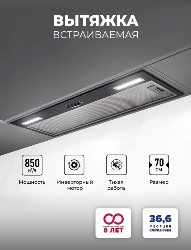 Бренд: LEX Глубина секции для встраивания: 68.1 см Модель: Hyper 900 Inverter BL PartNumber/Артикул Производителя: CHAT000159 Особенности: Инверторный мотор Режимы работы: отвод/циркуляция Управление: кнопочное Регулировка уровня мощности: ДА Количество регулировок мощности: 3 Количество двигателей: 1 Диаметр штуцера для отвода воздуха: 150 мм Максимальная производительность: 850 м3/час Производительность (вентиляционный канал): 650 м3/час Производительность (свободный выход воздуха): 850 м3/час Производительность (рециркуляция): 450 м3/час Уровень шума: 44 дБ Тип фильтра: алюминиевый жироулавливающий Мощность подключения: 65 Вт Тип подсветки: светодиодное Количество ламп подсветки: 2 Мощность ламп подсветки: 2 Вт Цвет: черный Размеры: 69.6x19.5x29см Размеры для встраивания: 67.6x26.5x68.1см Вес товара: 5.7 кг Габариты упаковки (ед) ДхШхВ: 0.76x0.265x0.345 м Вес упаковки (ед): 6.5 кг Объем упаковки (ед): 0.069483 м3 Страна производства: Китай Подключение к электросети: кабель с вилкой Высота вытяжки: 19.5 см Глубина вытяжки: 29 см Ширина вытяжки: 69.6 см