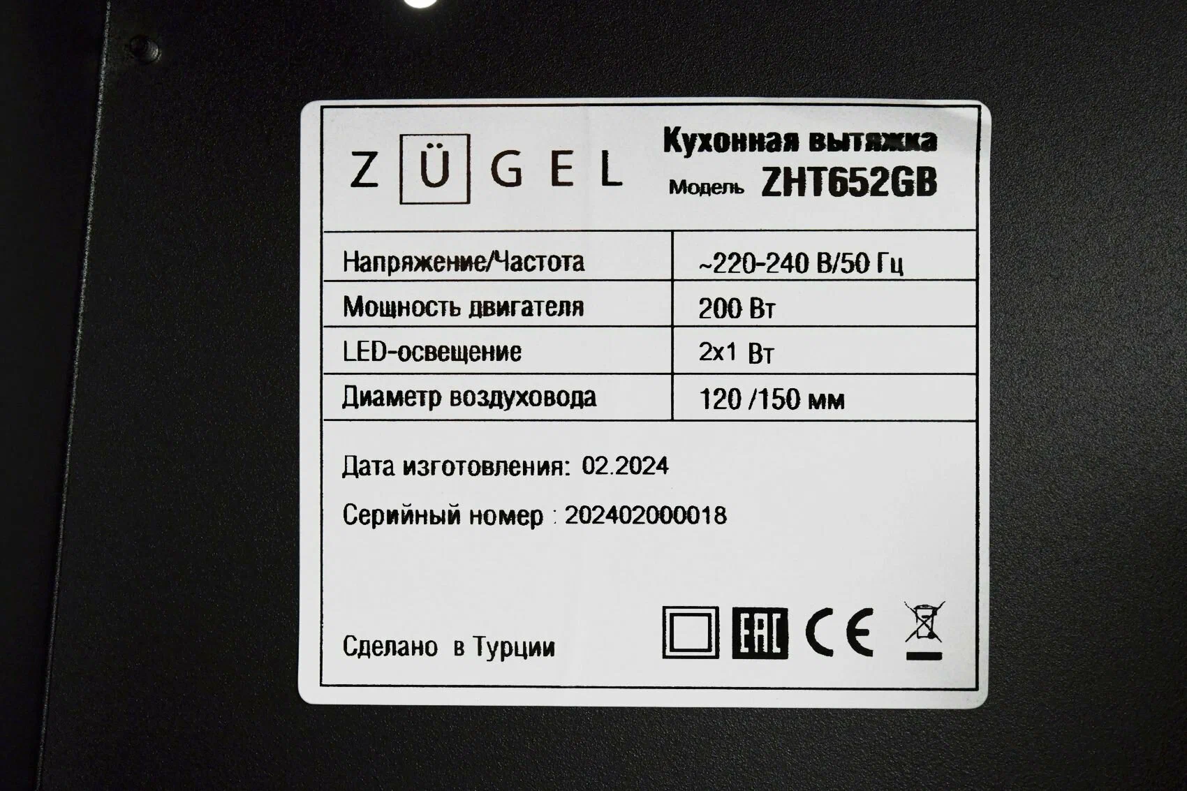 Встраиваемая вытяжка Zugel ZHT652GB, черный