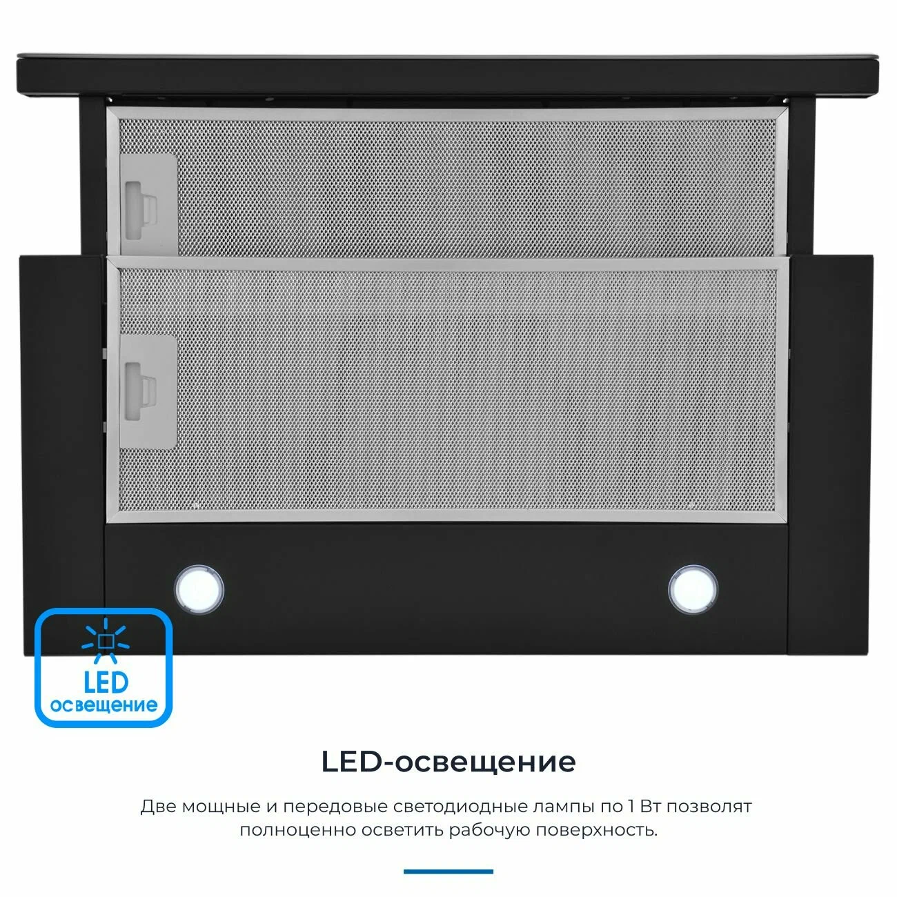 Дополнительная информация: кабель питания с вилкой, минимальный уровень шума 51 дБ, площадь кухни до 32 кв.м, угольный фильтр приобретается отдельно