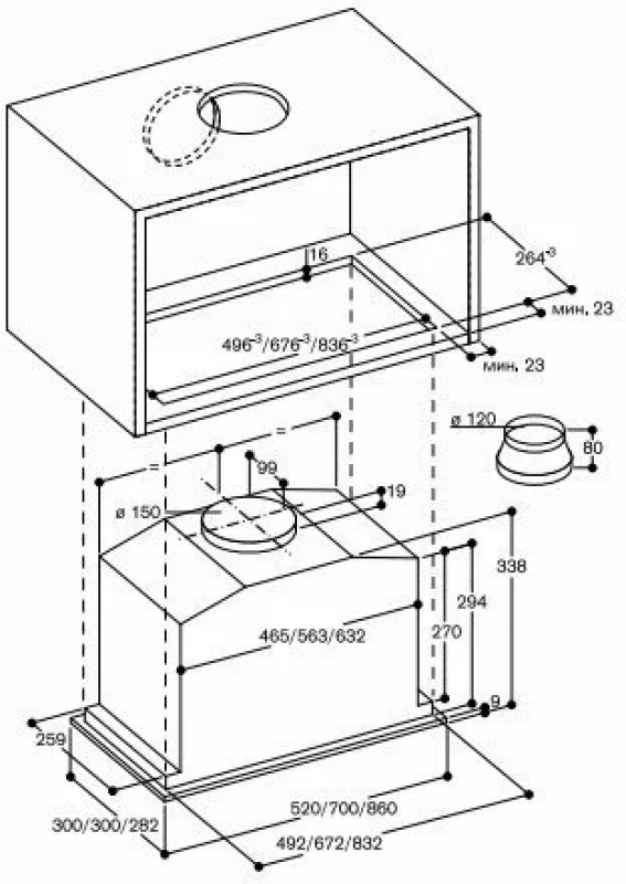Диаметр патрубка воздуховода: 150 мм
