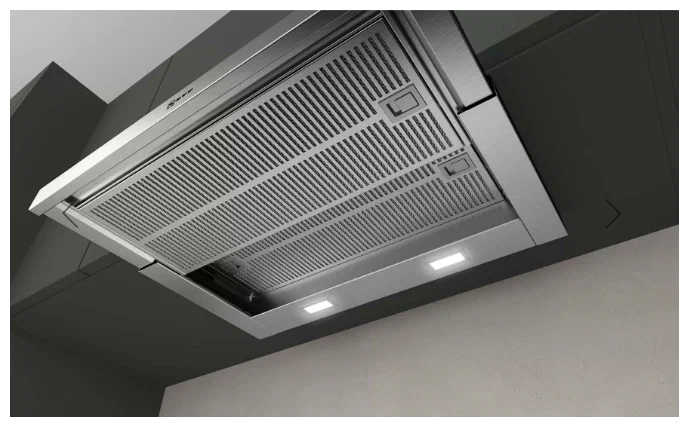 Данная модель вытяжки является встраиваемой и предназначена для монтажа в шкаф, что позволяет экономить пространство на кухне и придает интерьеру законченный вид. Она выполнена в цвете нержавеющей стали, что делает ее не только стильной, но и легкой в уходе.