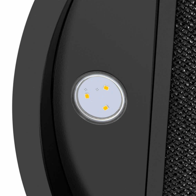 Электронное управление с подсветкой позволит выбрать один из 3-х режимов работы вентилятора и включить 2 светодиодные лампочки (2х2,2 Вт), расположенные по бокам от фильтра.