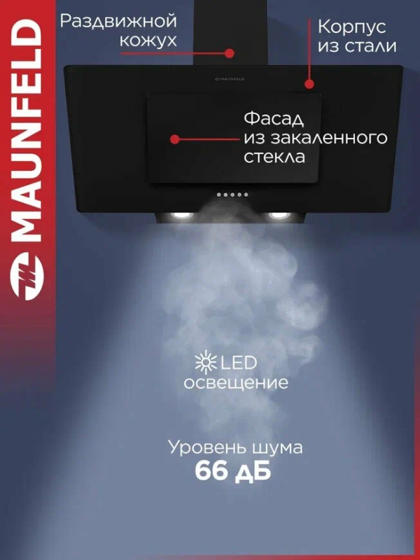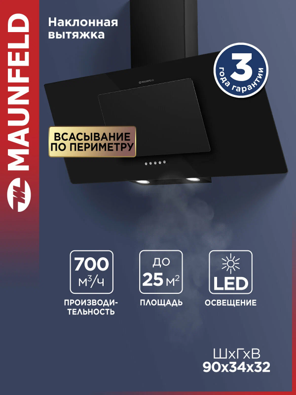 Кухонная вытяжка MAUNFELD "Tower 90" - это современное и функциональное решение для вашей кухни. Наклонная форма и пристенная установка делают ее удобной и стильной, а черный цвет корпуса и окантовки придает ей элегантный вид.Мощность двигателя составляет 100 Вт, что обеспечивает высокую производительность и эффективное удаление неприятных запахов и дыма. Максимальная производительность достигает 700 м3/ч, что позволяет быстро и качественно очистить воздух на кухне.Диаметр патрубка воздуховода составляет 150 мм, что обеспечивает хорошую пропускную способность и позволяет подключить вытяжку к системе вентиляции.Вытяжка оснащена тремя скоростями работы, что позволяет выбрать оптимальный режим в зависимости от интенсивности приготовления пищи. Управление осуществляется с помощью механических кнопок, что делает его простым и понятным.Освещение на светодиодах обеспечивает яркое и равномерное освещение рабочей поверхности, что позволяет экономить электроэнергию и делает процесс приготовления пищи более комфортным.Материал корпуса и окантовки - металл и пластик, что гарантирует прочность и долговечность конструкции. Максимальная высота вытяжки составляет 75 см, а минимальная - 65 см, что позволяет легко подобрать подходящее место для установки.В комплект поставки входит монтажный комплект, что упрощает процесс установки и позволяет сэкономить на услугах специалистов.Кухонная вытяжка MAUNFELD "Tower 90" - это сочетание стиля, функциональности и качества, которое сделает вашу кухню комфортной и уютной.